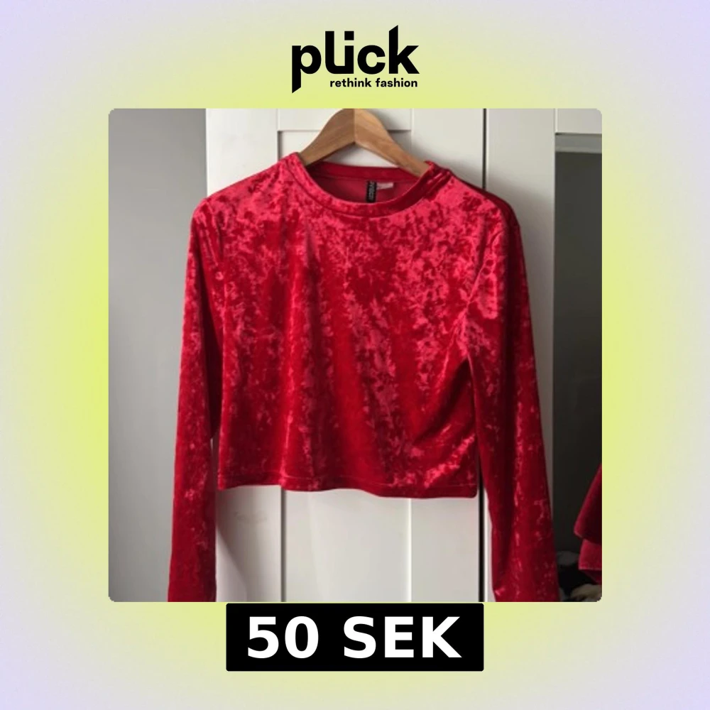 Säljer en röd långärmad tröja från H&M Divided i mjuk sammet. Tröjan har en croppad passform och rund halsringning. Perfekt för dig som vill sticka ut med en glansig och cool vibe. Superfin färg och skön att bära!
