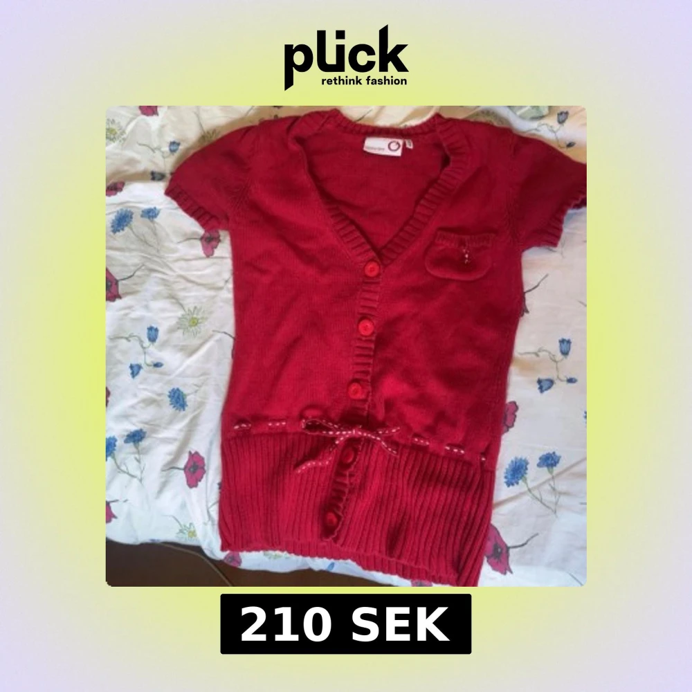 Snygg röd stickad kofta från Number One med korta ärmar och knappar framtill. Strl 36/38🩷