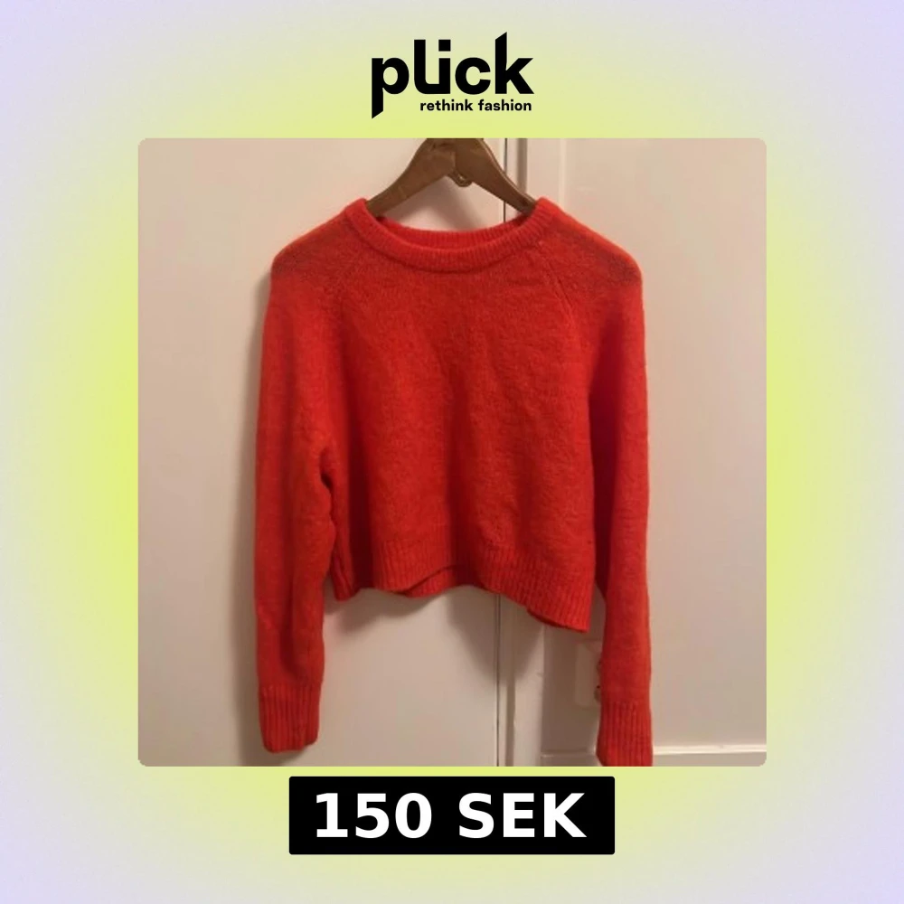Säljer en snygg röd stickad tröja från Carin Wester. Tröjan har en croppad design med långa ärmar och rund halsringning. Perfekt för kyliga dagar! 31 % alpacka, 22 % ull. Använd två gånger.