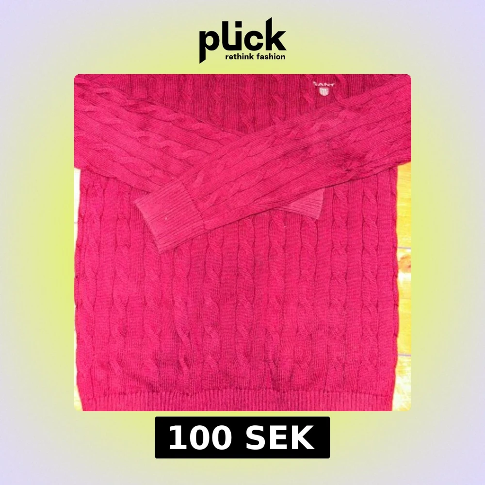 Säljer en snygg röd stickad tröja från Gant med kabelstickat mönster. Tröjan har långa ärmar och en rund halsringning. Perfekt för kyliga dagar! I bild fyra syns ett litet hål i ena armen som ej syns tydligt när man har på sig tröjan.