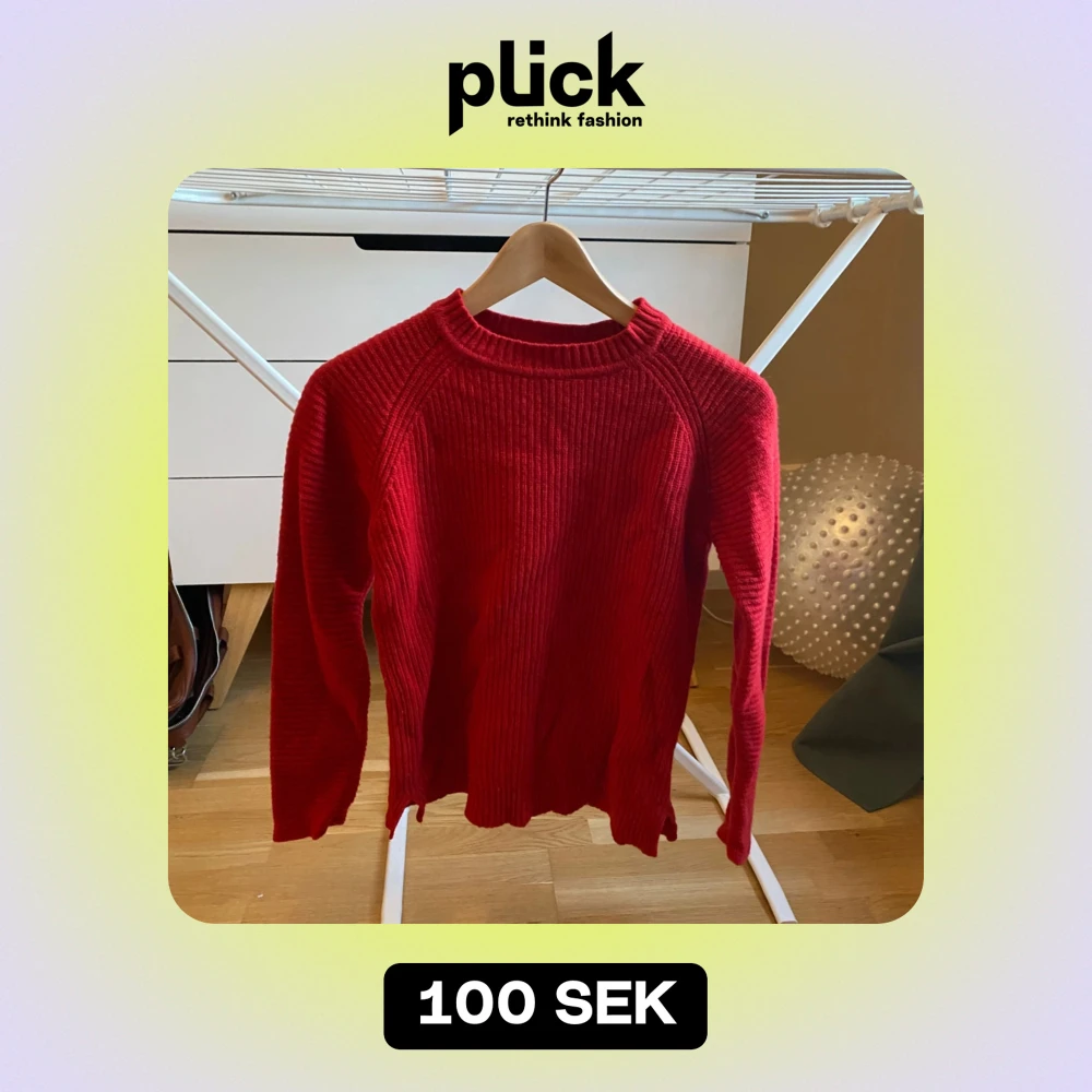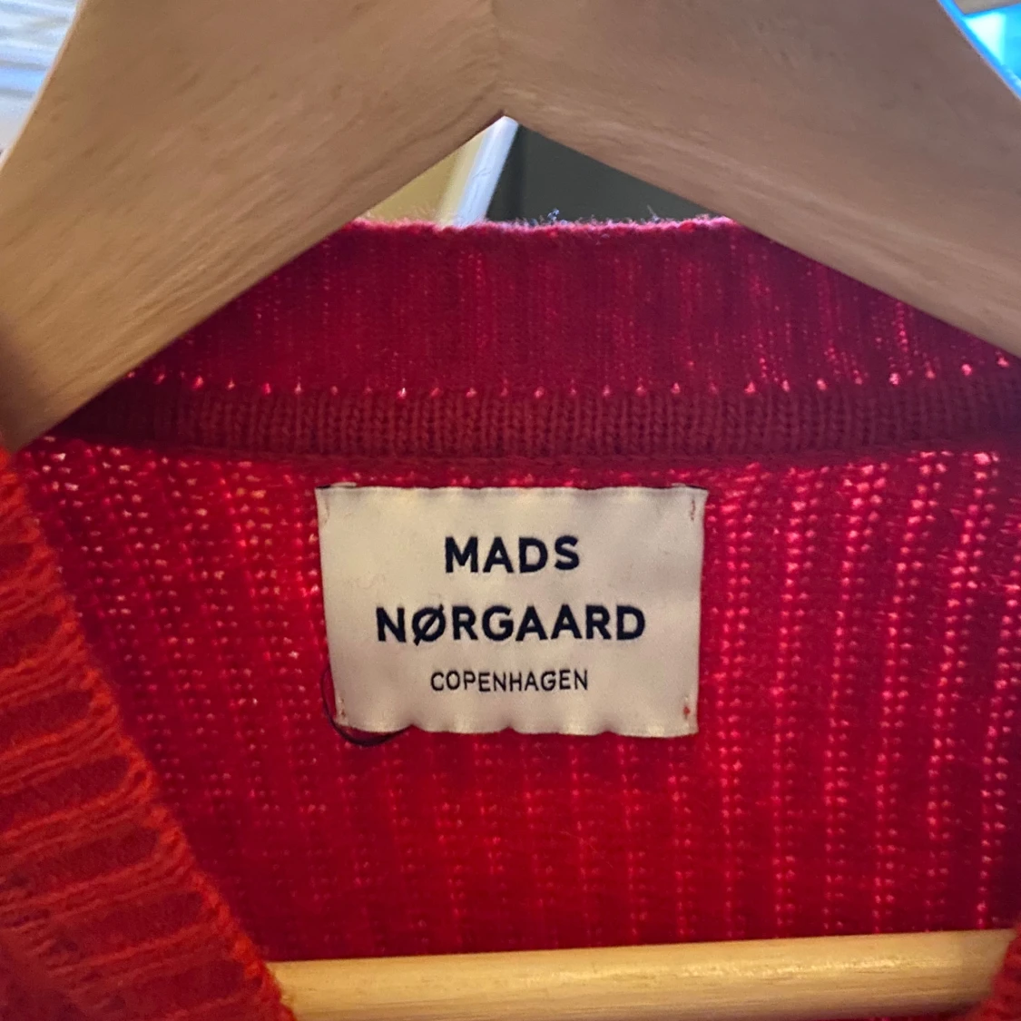 Säljer en snygg röd stickad tröja från Mads Nørgaard. Perfekt för kyliga dagar med sin varma och mjuka känsla. Tröjan har långa ärmar och en klassisk rund halsringning. Passar både till vardags och lite finare tillfällen. Ett måste i garderoben! 🔥