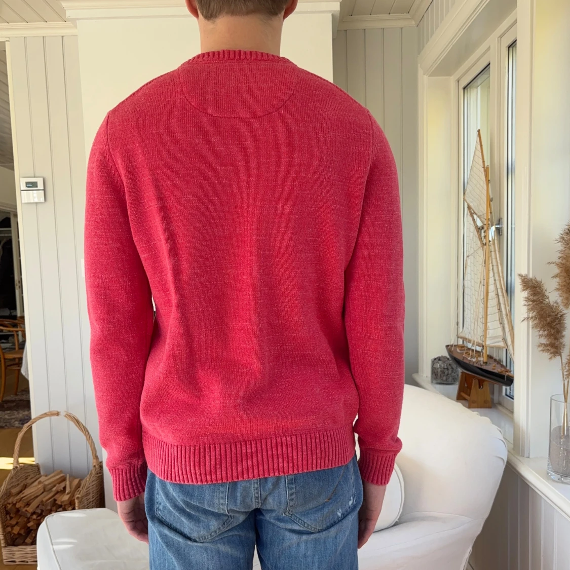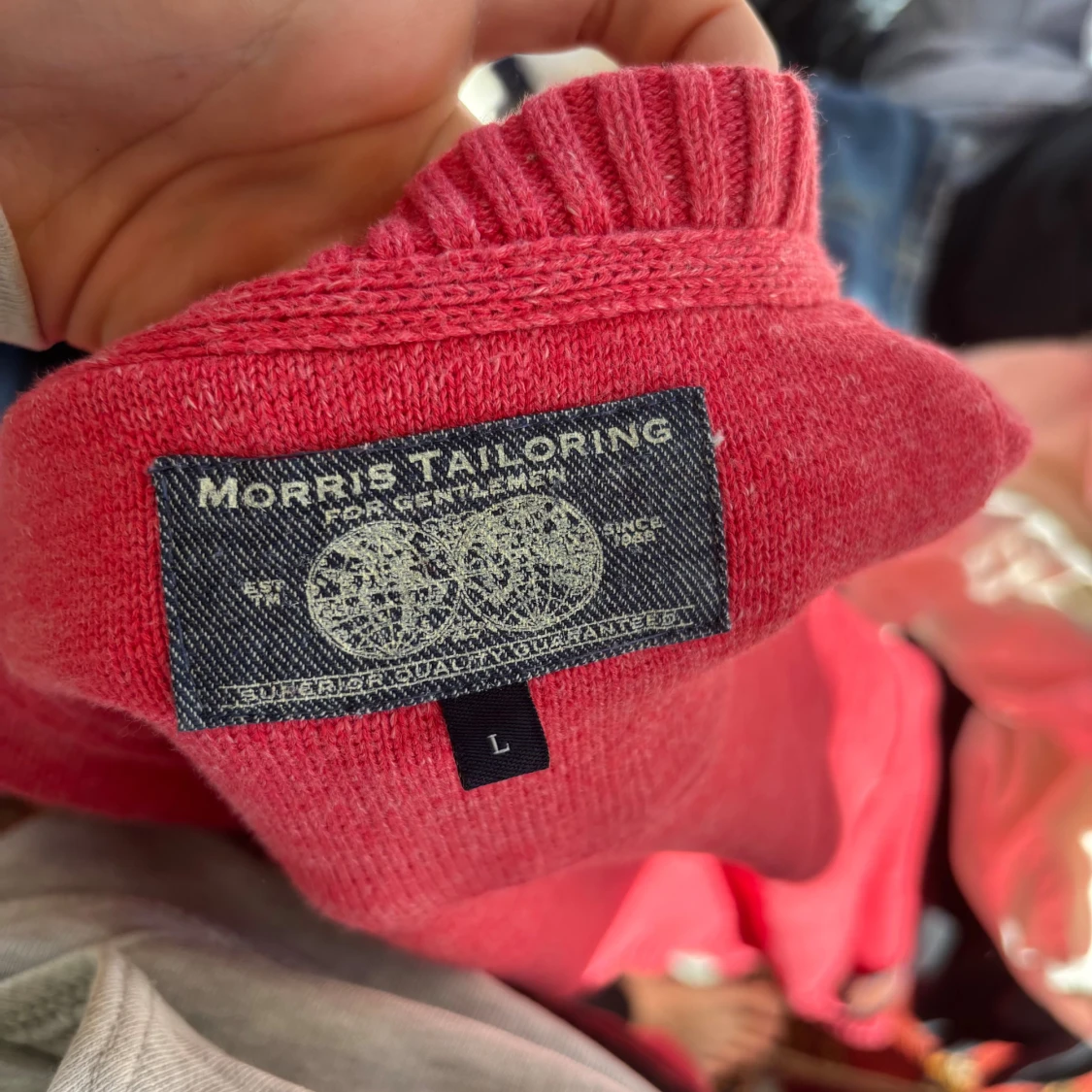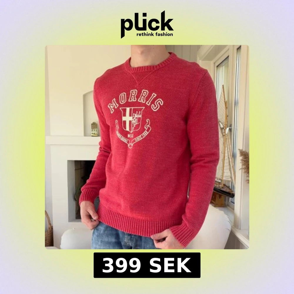 Röd stickad tröja från Morris med broderad logga och emblem framtill. Tröjan har rund halsringning, ribbade muddar och är långärmad. Perfekt för dig som gillar klassisk och stilren design med en sportig touch.