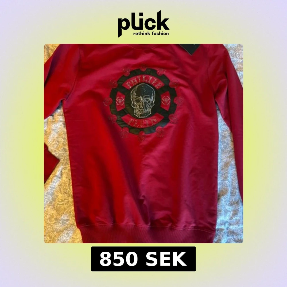 Cool röd sweatshirt från Philipp Plein med stort döskalletryck och logga framtill. Tröjan har långa ärmar, ribbade muddar och detaljer i svart och silver. Perfekt för dig som vill sticka ut med en edgy stil. Finns alla 4 storlekar