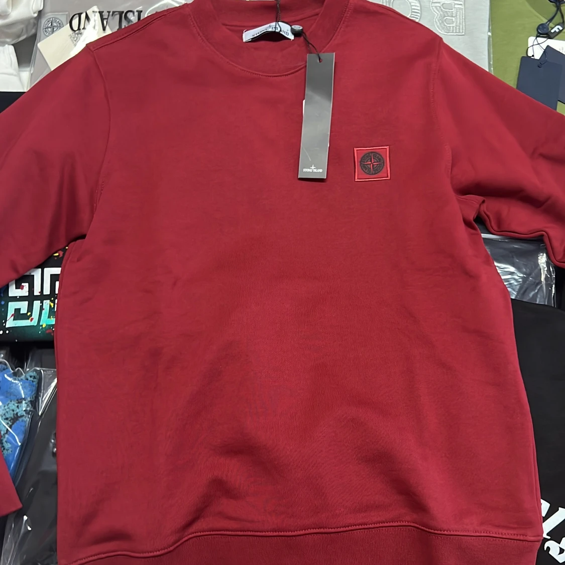 Snygg röd sweatshirt från Stone Island med klassisk rund hals och ikonisk kompasslogga på bröstet. Tröjan är i mjuk bomull och har långa ärmar. Perfekt för dig som gillar stilrena och trendiga plagg med streetkänsla. Finns i alla storlekar