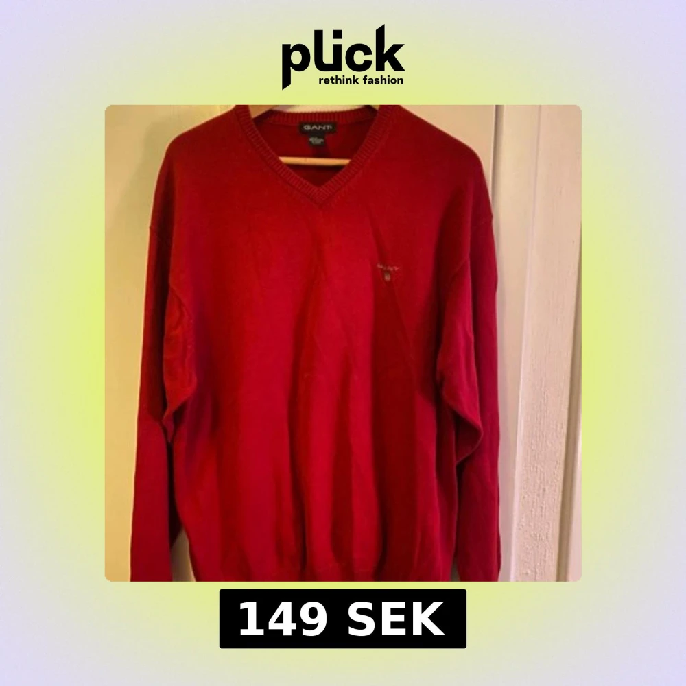 Säljer en snygg röd tröja från GANT med v-ringad hals. Tröjan har långa ärmar och är perfekt för en stilren look. Den är tillverkad i ett mjukt material som ger en bekväm passform.