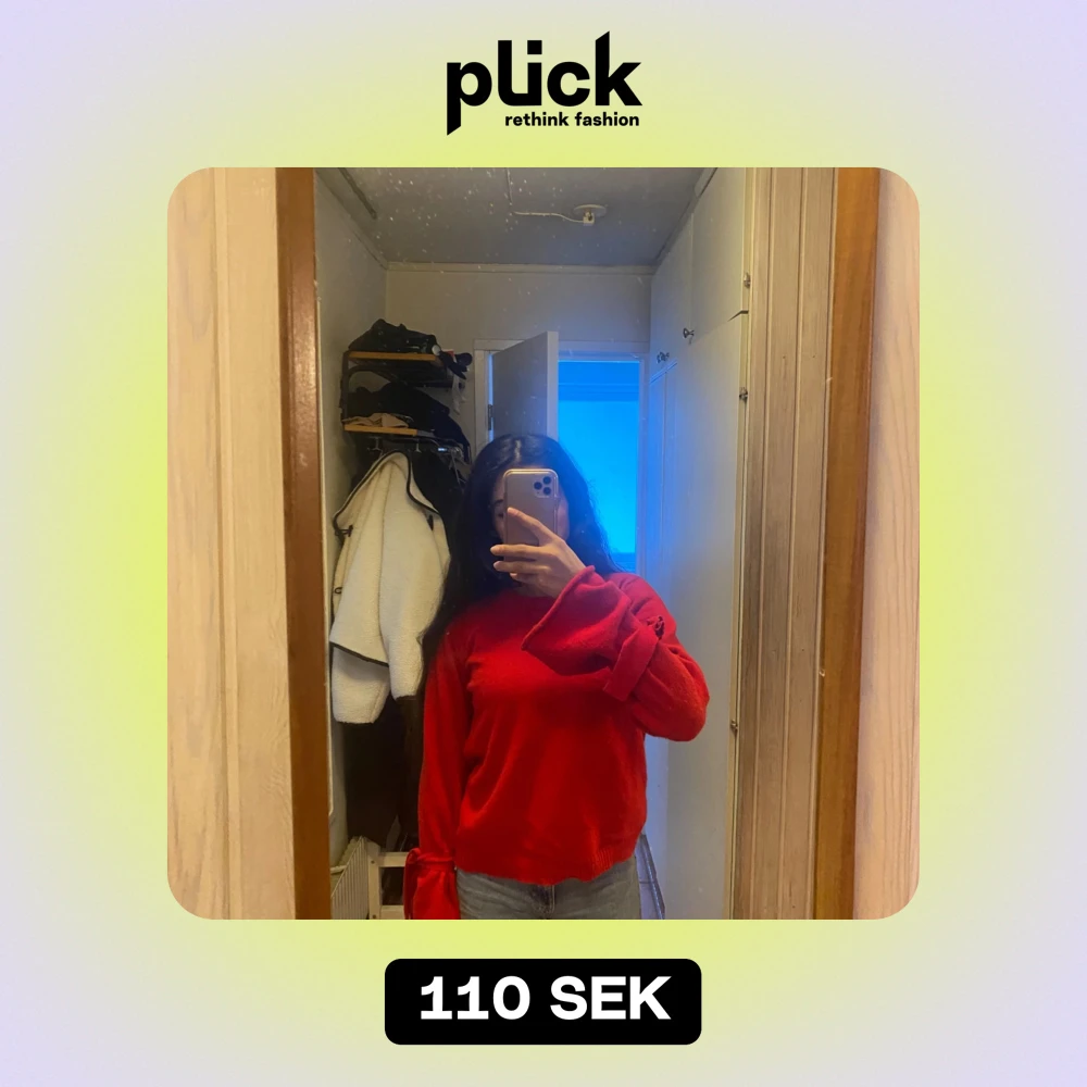 Säljer en snygg röd tröja med långa ärmar och coola knytningar vid ärmsluten. Perfekt för att liva upp garderoben! Tröjan är i bra skick och passar perfekt till både vardag och fest.