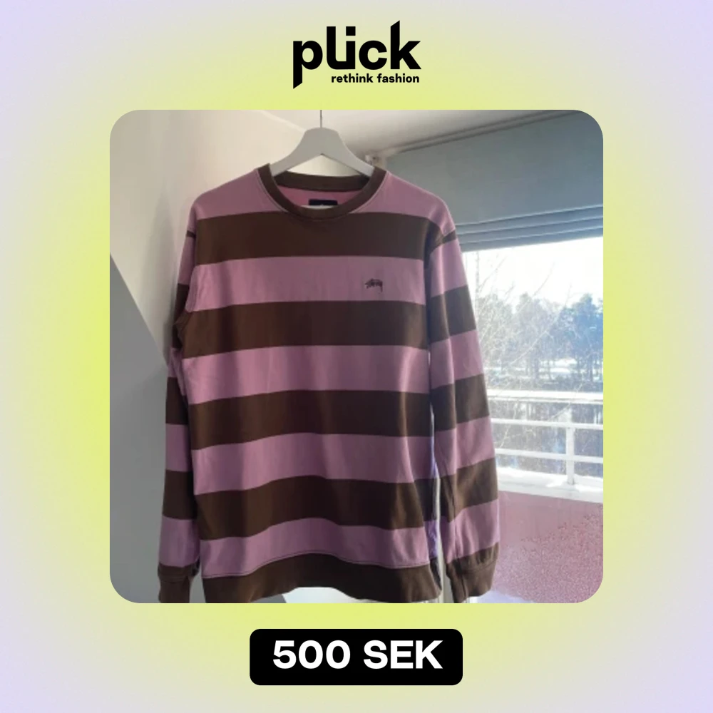 Köpt på sns. Dessa är nu slutsålda och går inte att köpa i butik längre. (https://www.sneakersnstuff.com/sv/product/29415/stussy-bold-stripe-ls-jersey) Mycket bra skick.