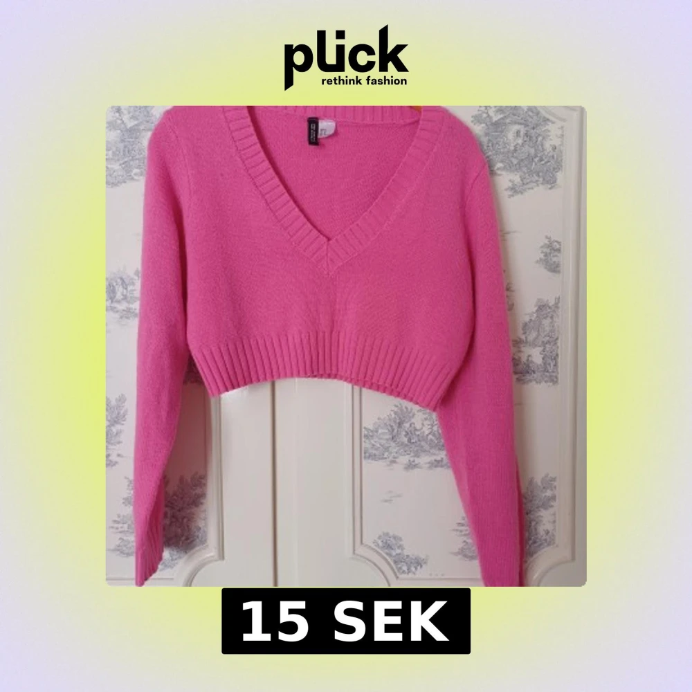 Säljer en snygg rosa croppad tröja från Divided. Tröjan har en v-ringad design och långa ärmar med ribbade muddar. Perfekt för en trendig look! 💖