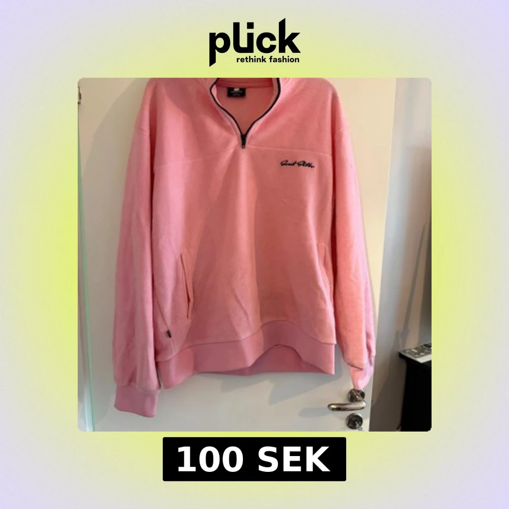 Mysig rosa fleece-tröja med halv dragkedja och broderad logga på bröstet. Tröjan har långa ärmar, fickor på sidorna och ribbade muddar vid ärmslut och nederkant. Perfekt för kyliga dagar.