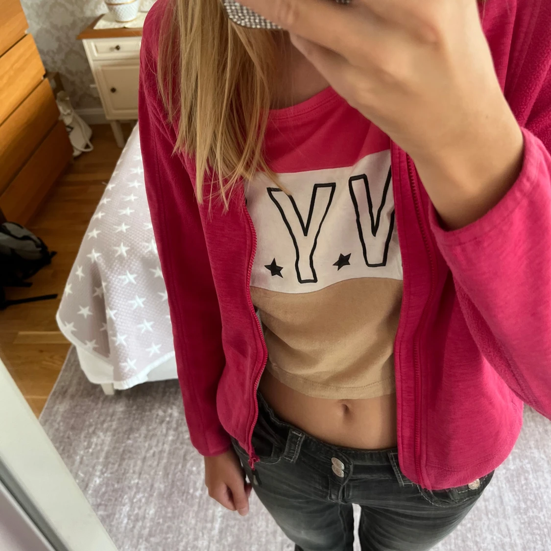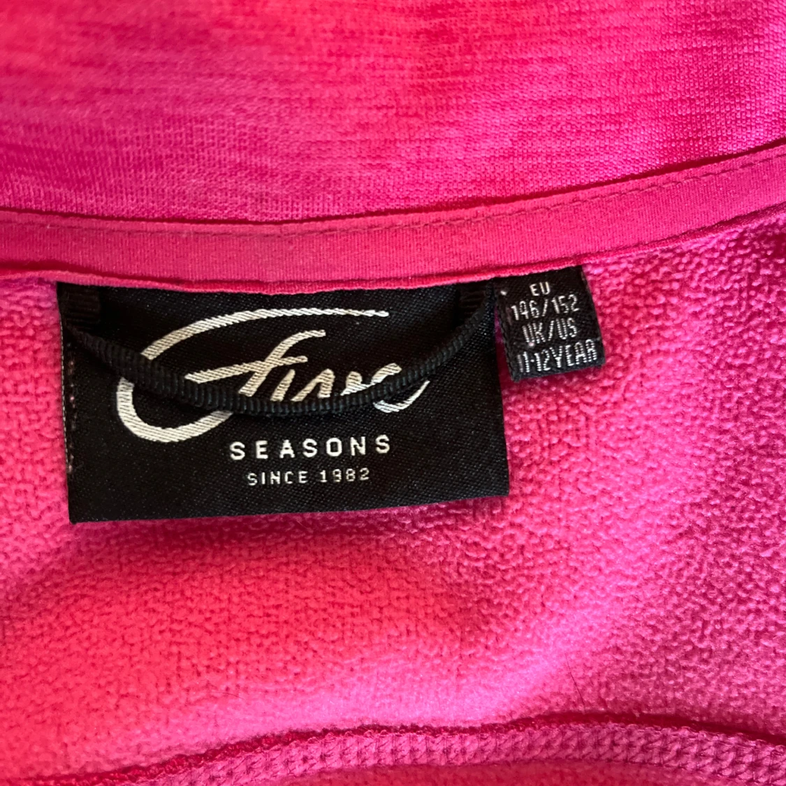 Säljer en snygg och sportig rosa fleecejacka från Five Seasons. Jackan har dragkedja framtill, två fickor och broderad logga på ena sidan. Står att de är stl 146 152 men passar nån som har xxs eller xs Perfekt för kyliga dagar och enkel att slänga på över en t-shirt. Passar dig som gillar färg och vill ha något bekvämt. Säljer även tröjan jag har på mig under (se separat annons, du kan också få båda för ett bättre pris) Hör av er om frågor!❤️
