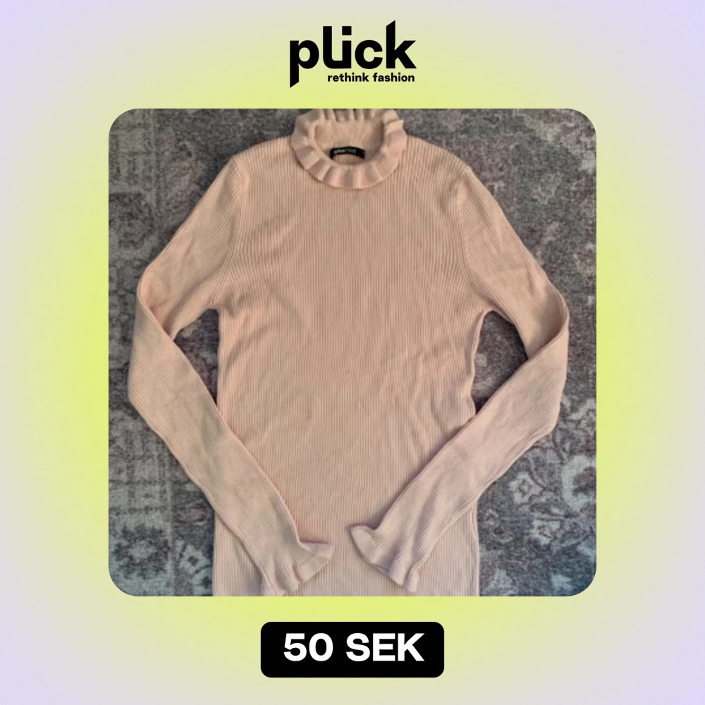 En supermjuk ribbad turtleneck med volanger vid ärmarna och kragen🌸 Från ginatricot i storlek L men är nog mer som en medium. Den riktiga färgen syns på sista bilden! 💗