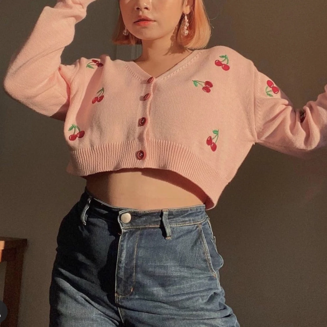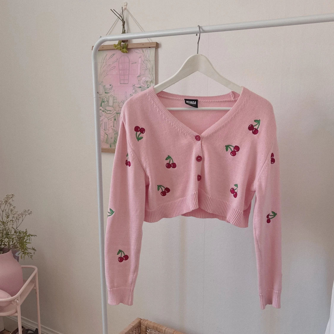 världens sötaste kofta med 🍒 broderier på! älskar älskar denna så mycket men passar inte min still längre! inköpspris 550kr. sparsamt använt! ❤️