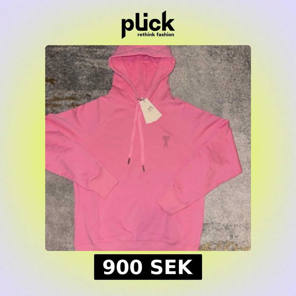 Säljer en snygg rosa hoodie från Ami Paris med broderad logga på bröstet. Tröjan har huva med snörning, känguruficka och ribbade muddar. Perfekt för dig som gillar streetstyle och vill sticka ut med färg.
