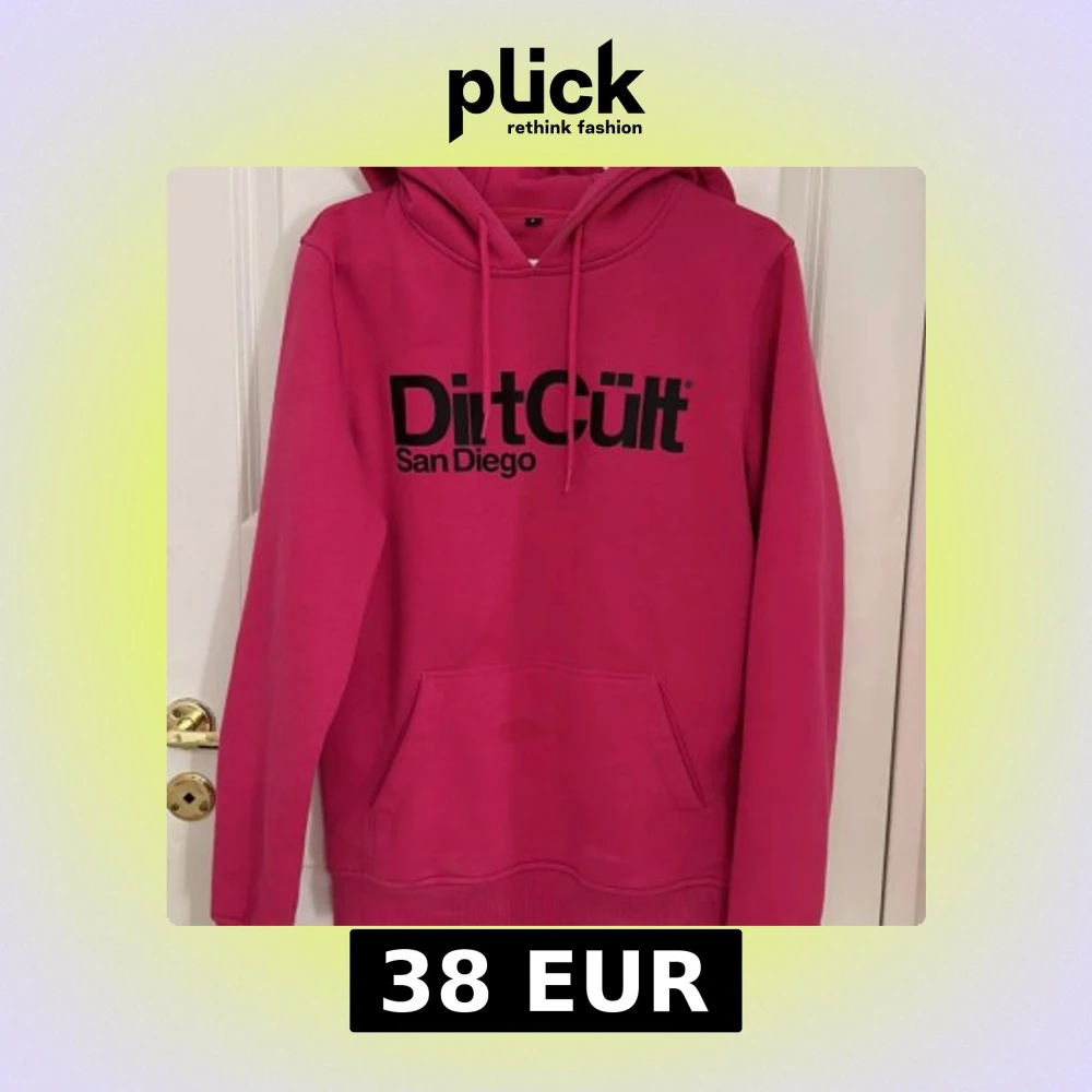 Säljer en snygg rosa hoodie från DirtCult San Diego med svart tryck på bröstet. Hoodien har huva med snörning och en stor magficka framtill. Perfekt för dig som gillar streetwear och vill sticka ut med färg.