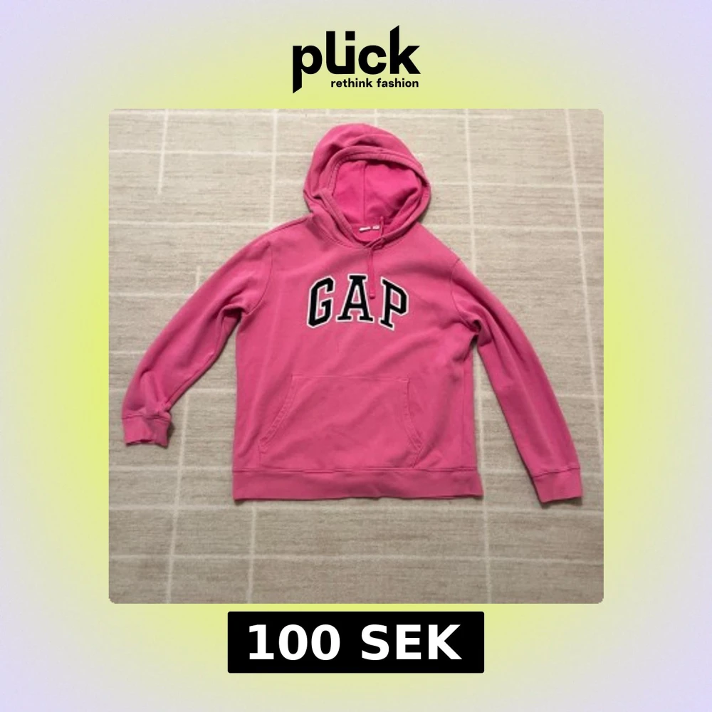 Säljer en rosa hoodie från GAP med stor logga framtill. Perfekt för dig som gillar en avslappnad och sportig stil. Materialet är mjuk bomullsmix. Använd flera gånger, men nu för liten💕