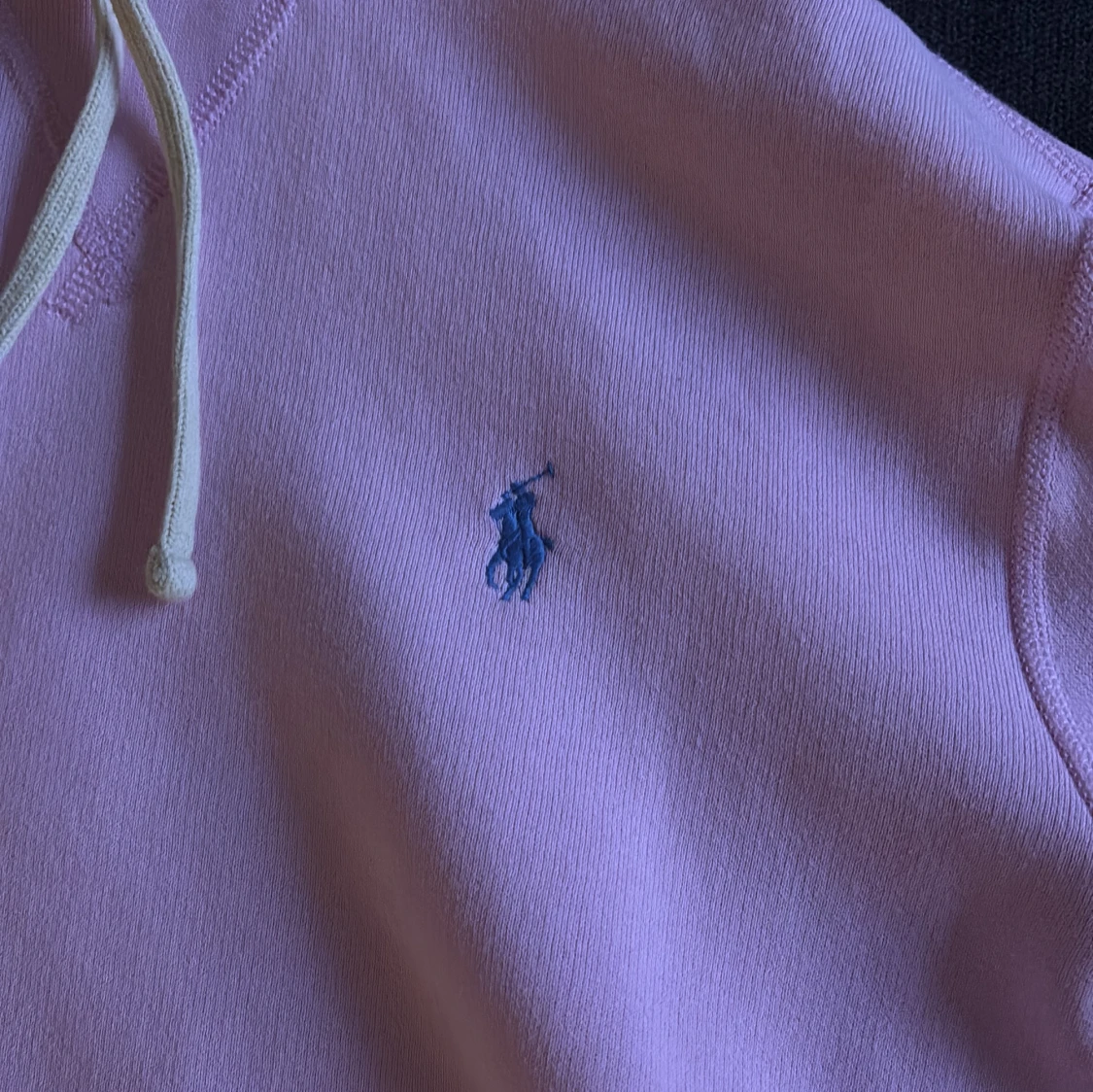 Säljer en snygg rosa hoodie från Polo Ralph Lauren med en broderad logga på bröstet. Hoodien har en klassisk känguruficka och justerbar dragsko i huvan. Perfekt för en avslappnad stil!