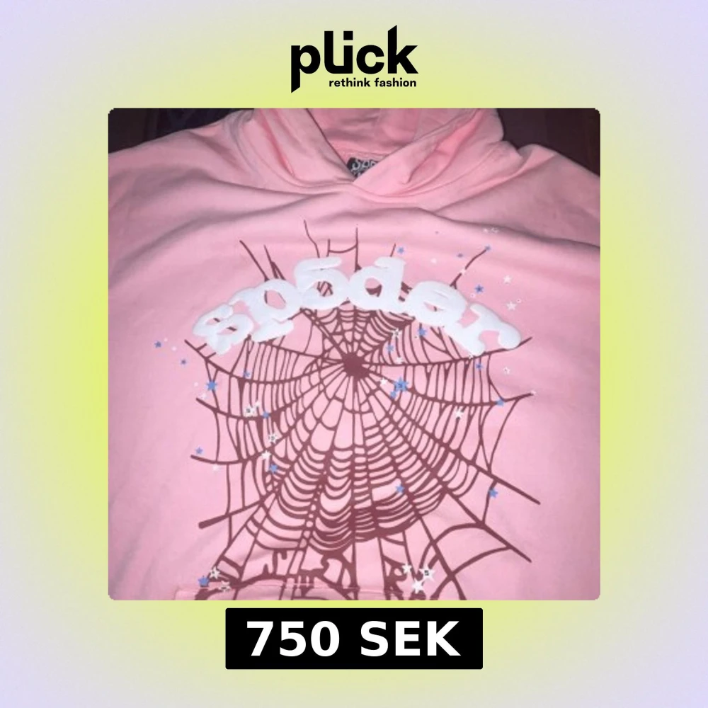 Cool rosa hoodie från Sp5der med stort spindelnätsprint och vita 3D-bokstäver på bröstet. Hoodien har huva, känguruficka och detaljer med små stjärnor i blått och vitt. Mjuk och skön, perfekt för dig som gillar streetwear vibes. Bara änvändt 2-3 gånger den är lite för stor för mig