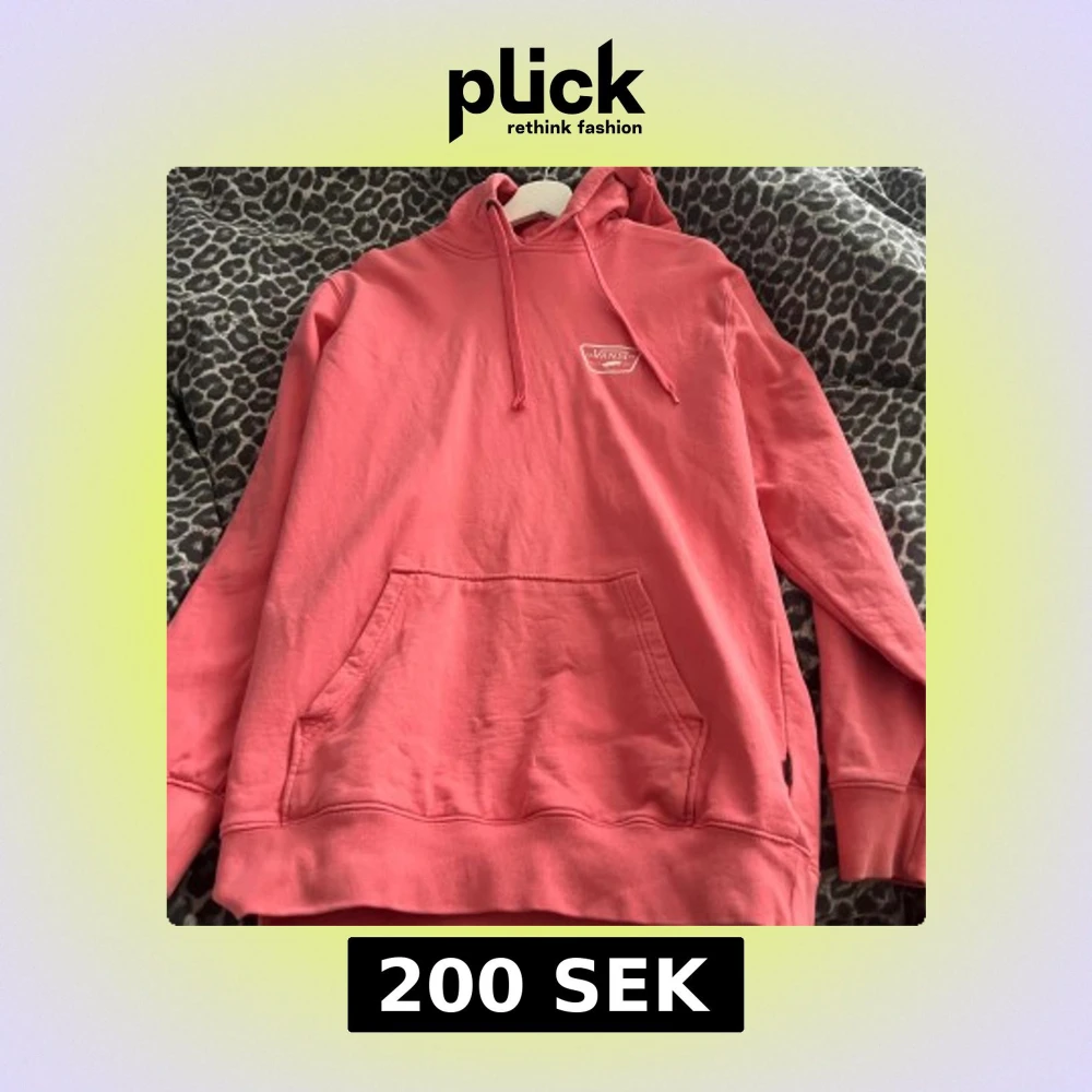 Säljer en snygg rosa hoodie från Vans med vit logga både fram och bak. Tröjan har huva med snörning, stor magficka och långa ärmar. Perfekt för dig som gillar streetwear och vill ha något bekvämt och stilrent.