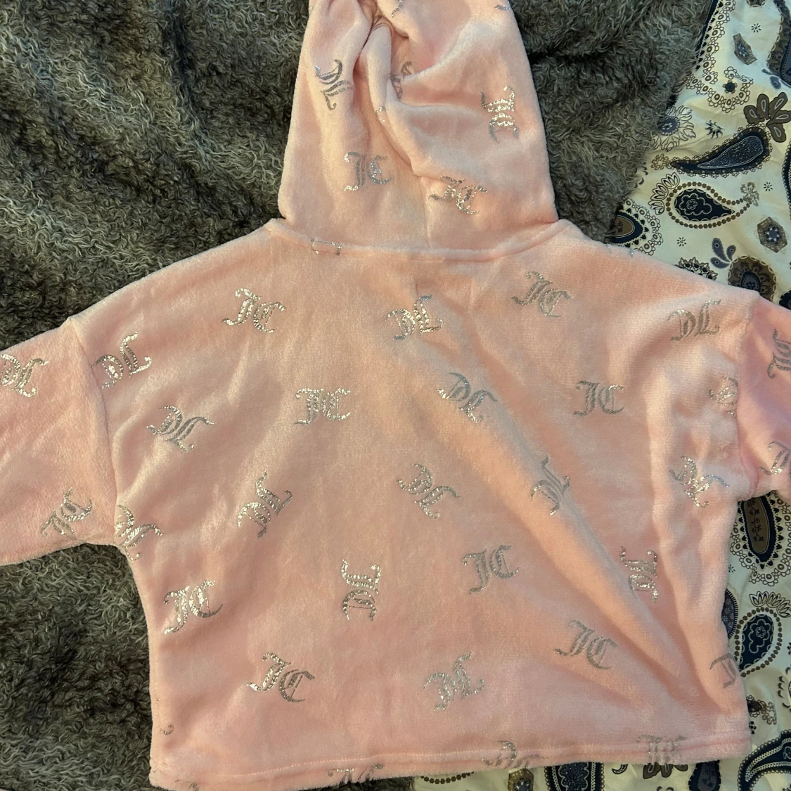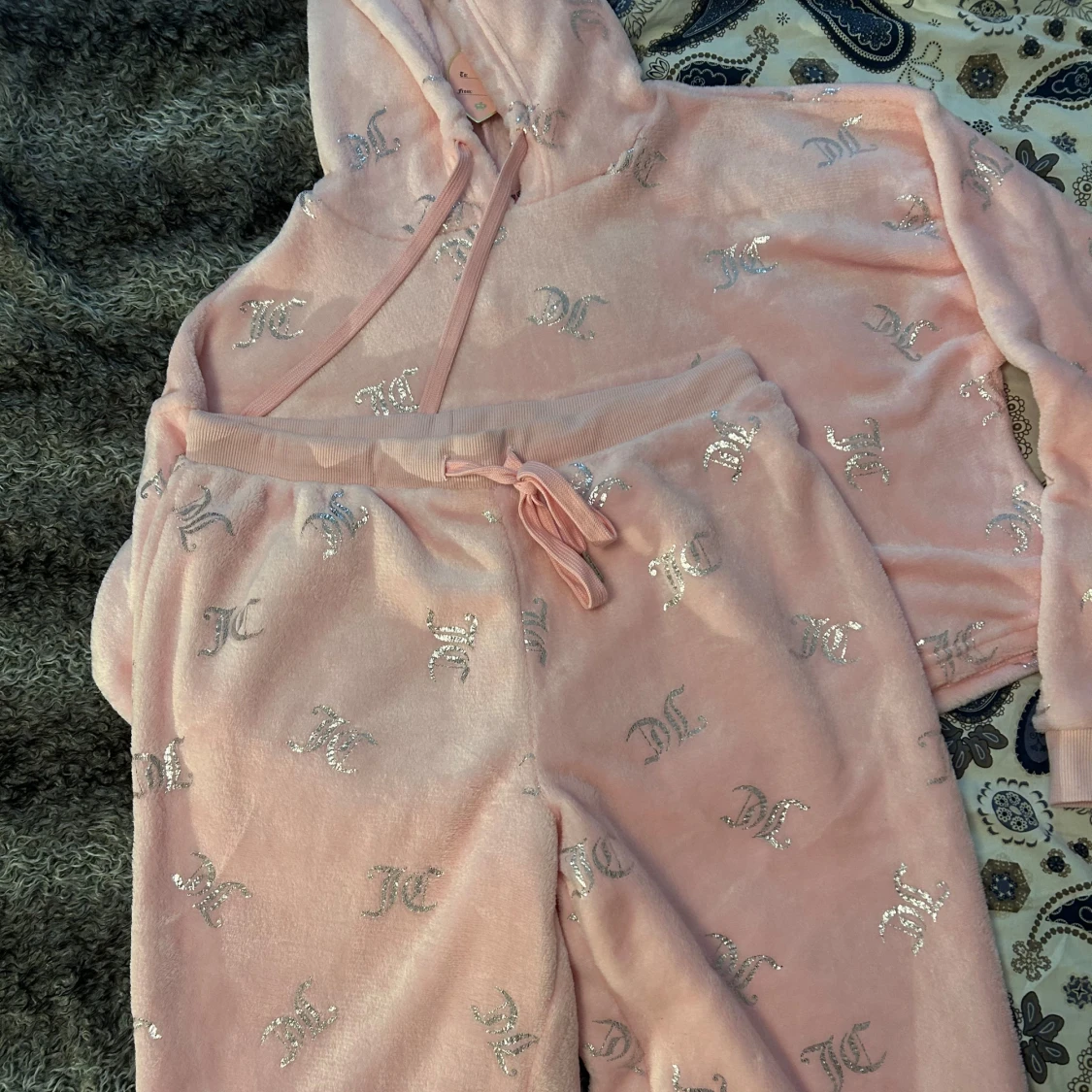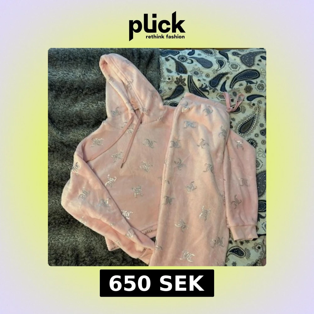 Supermysig rosa hoodie från JC med glittriga silver JC-loggor över hela tröjan. Tröjan har huva med snörning och är tillverkad i mjuk fleece som känns skön mot huden. Har även matchande byxorna. Perfekt för chill dagar och när du vill ha något extra cozy. Helt nya med lappen på.