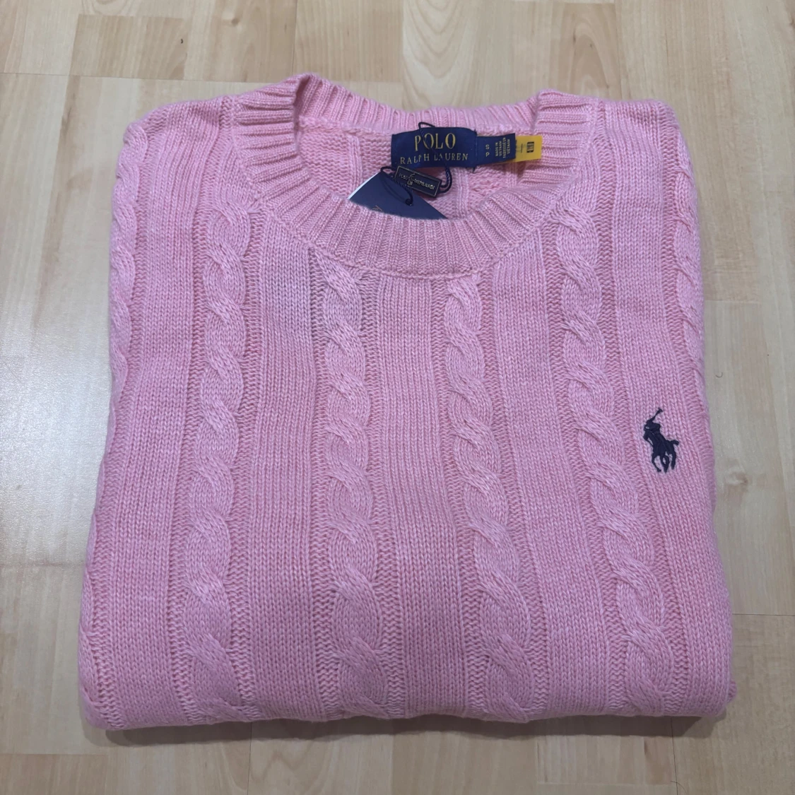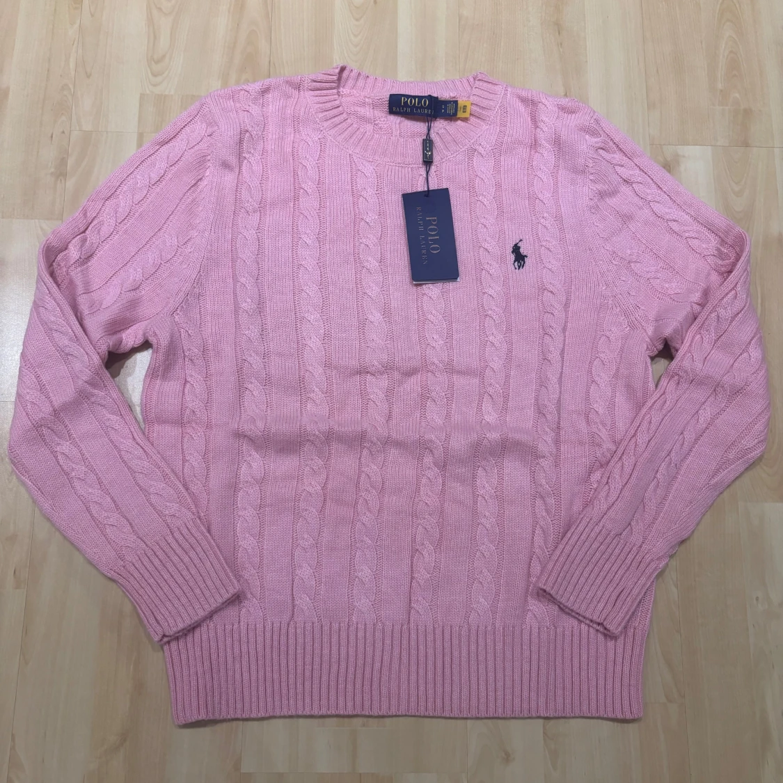 Supersnygg rosa kabelstickad tröja från Polo Ralph Lauren. Klassisk rund halsringning, långärmad och med den ikoniska broderade loggan på bröstet. Perfekt för lager-på-lager och ger en fräsch vibe till din outfit.