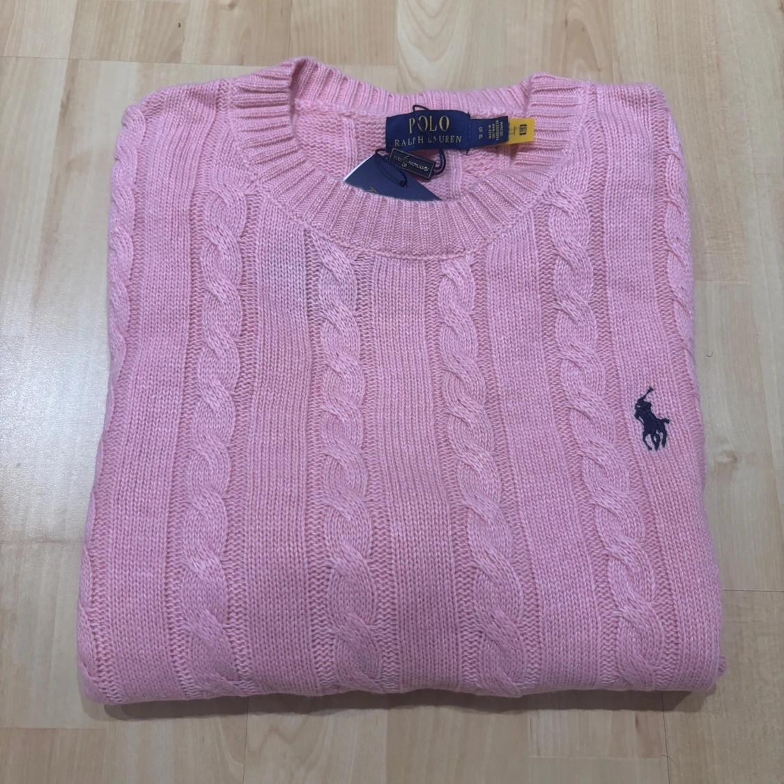 Supersnygg rosa kabelstickad tröja från Polo Ralph Lauren med klassisk rund halsringning och broderad logga på bröstet. Tröjan har långa ärmar och ribbade muddar för en snygg passform. Perfekt för lager på lager under kyliga dagar.