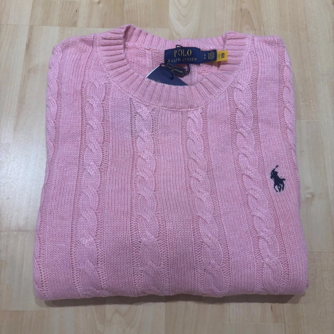 Snygg rosa kabelstickad tröja från Polo Ralph Lauren med klassisk rund hals och broderad logga på bröstet. Tröjan har långa ärmar och breda ribbade muddar vid ärmslut och nederkant. Perfekt för dig som gillar preppy stil och vill ha något mjukt och bekvämt.