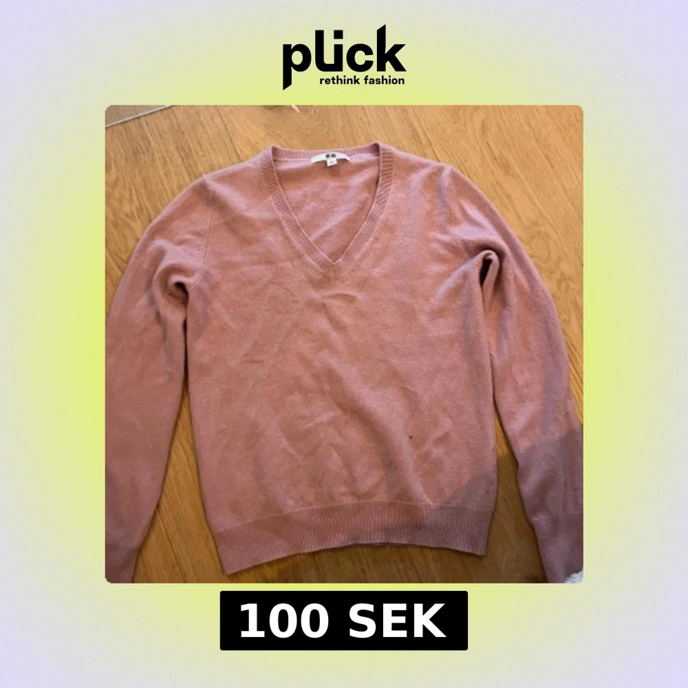 Säljer en mjuk och stilren rosa kashmirtröja från Uniqlo. Tröjan har en v-ringad design och långa ärmar💕