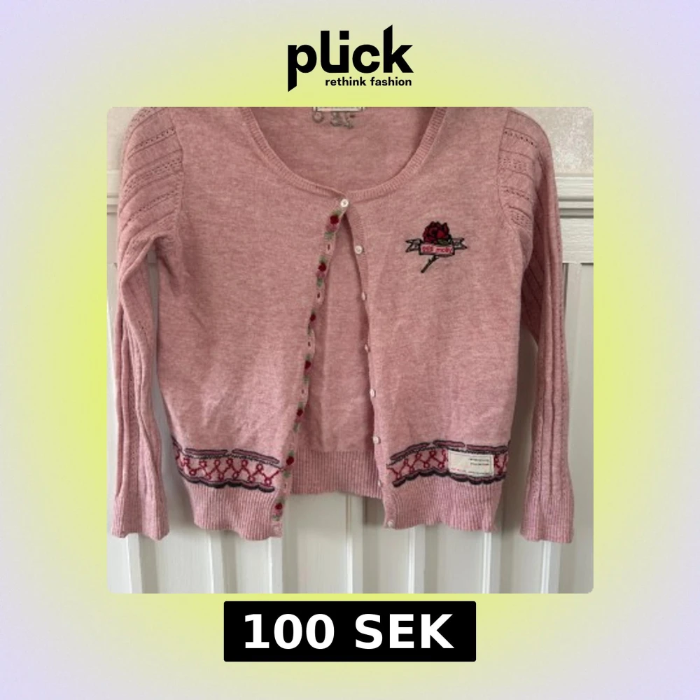 Superfin rosa kofta från Odd Molly med broderad ros på bröstet och dekorativa detaljer längs knäppningen och nederkanten. Koftan har långärmade ärmar med hålmönster och vita knappar. Perfekt för dig som gillar unika plagg med snygga broderier.