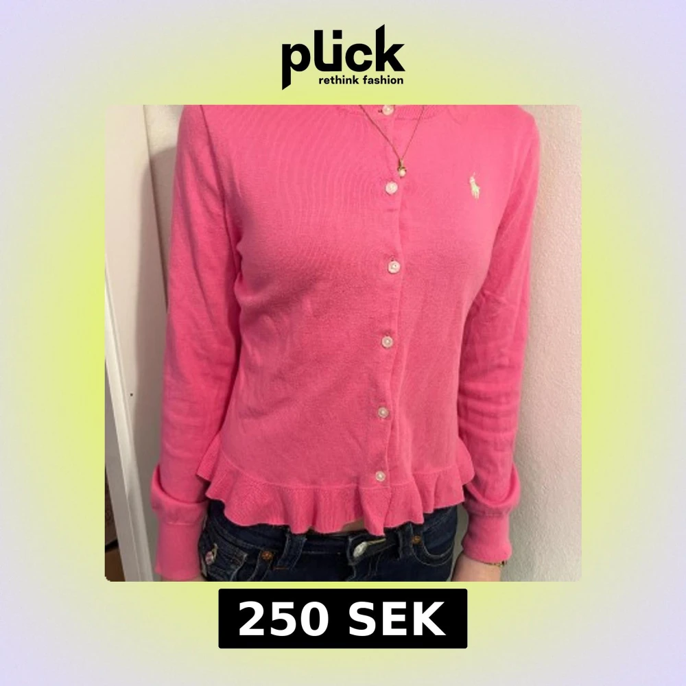 Supersöt rosa kofta från Ralph Lauren med volangkant nertill och klassisk knappstängning framtill. Liten broderad logga på bröstet. Långärmad och i mjuk bomull, perfekt för lager på lager under vår och höst. Strl 12-14 år eller xxs dam