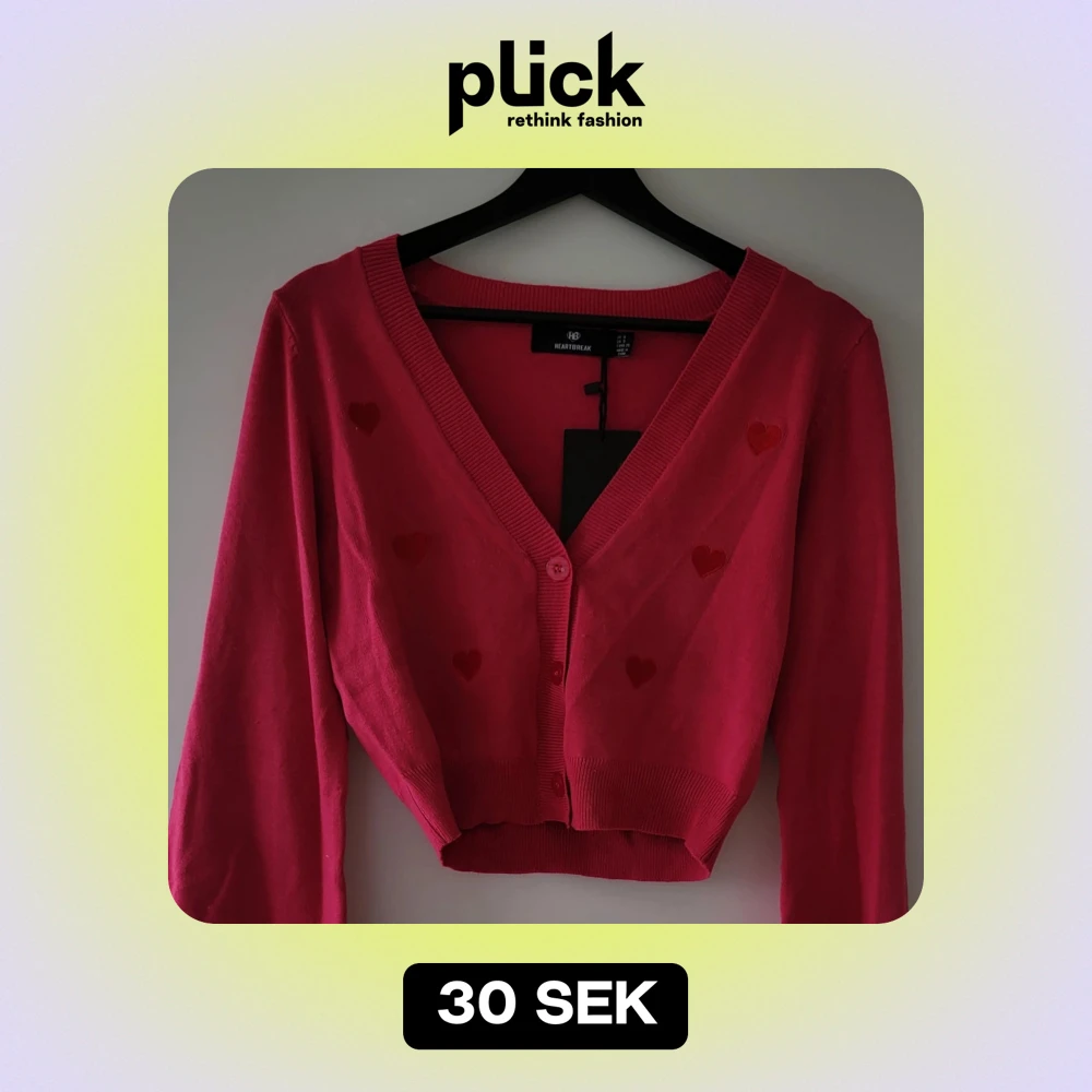 Rosa kofta från Heartbreak med söta hjärtan som mönster. Den är croppad och har en v-ringad design med knappar framtill. Aldrig använd. Storlek: S Skickas inslagen i silkespapper i vattentätt paket. Skicka pm för fler bilder.