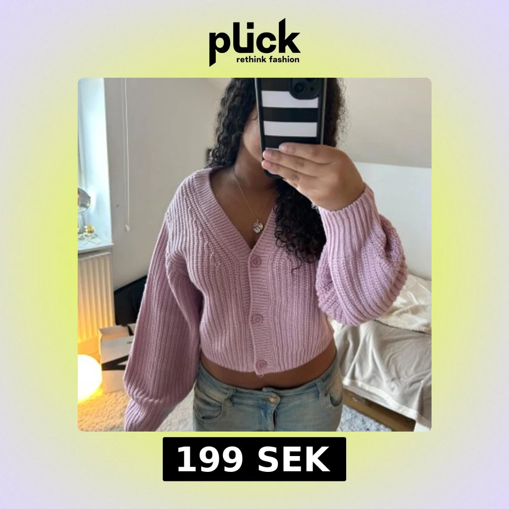 Säljer en söt ljusrosa/ljuslila kofta. Den är lite croppad i passformen