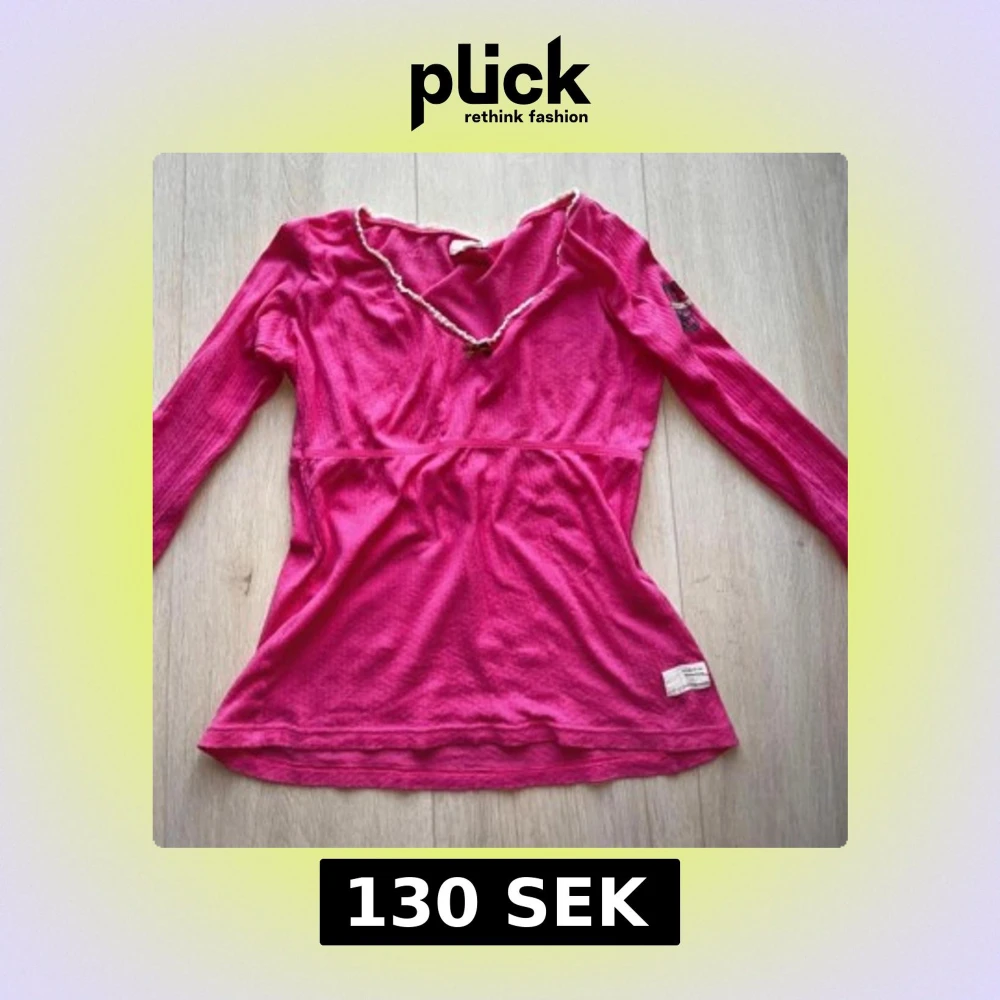 Säljer en rosa långärmad topp med v-ringad hals och dekorativt broderi på ärmen. Toppen har en lätt figurnära passform och råa kanter vid halsen. Perfekt för dig som vill sticka ut lite extra.