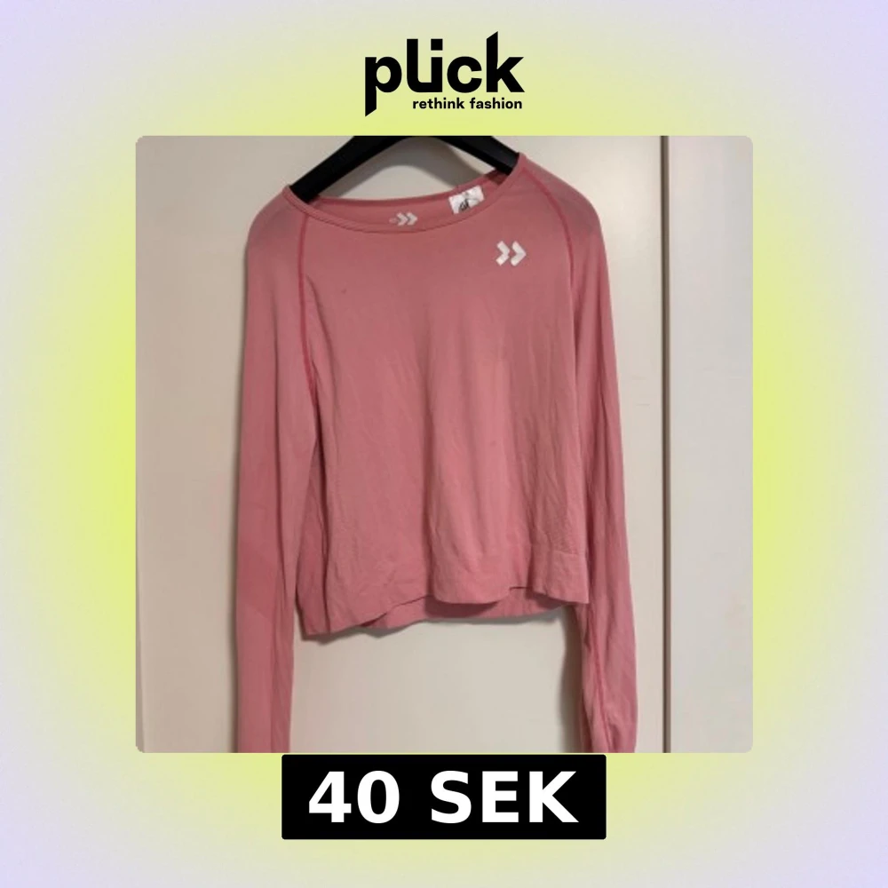 Säljer en rosa långärmad träningströja från lager157 med vita logodetaljer på bröstet. Tröjan har en rund halsringning och är tillverkad i ett lätt och stretchigt material som passar perfekt för träning eller sportiga dagar.