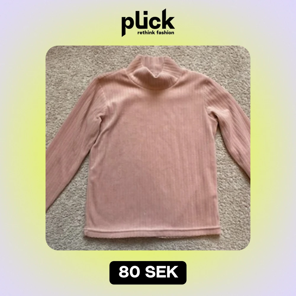 Rosa långärmad tröja men ränder i tyget från Uniqlo. Halv polo-krage/ hög krage.