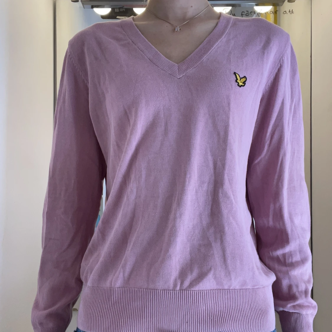 Jättefin stickad tröja från Lyle and Scott. Nästan aldrig använd. Storlek L men är ganska liten i storleken. Fraktkostnad kan tillkomma.