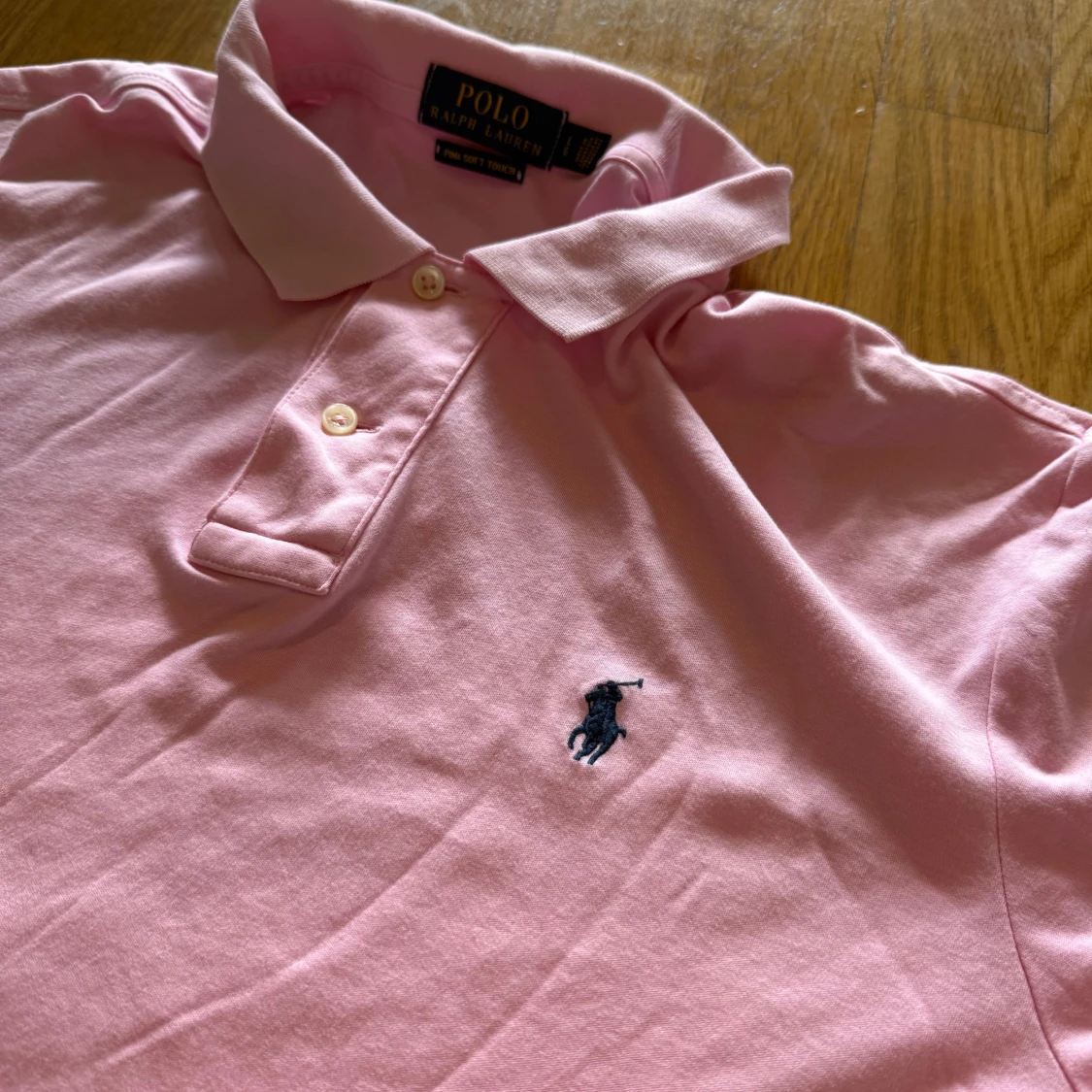 Snygg rosa pikétröja från Polo Ralph Lauren i mjuk bomull. Klassisk krage, korta ärmar och två knappar framtill. Ikoniska broderade loggan på bröstet. Perfekt för en fräsch och stilren look i sommar.