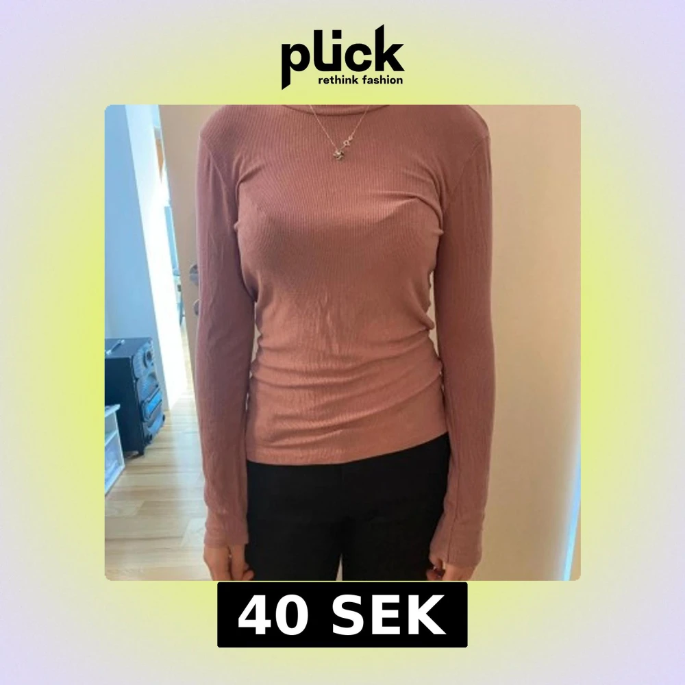 Säljer en snygg långärmad topp i dammigt rosa med ribbad struktur och hög hals. Toppen har en djup v-ringad öppen rygg som ger en unik look. Materialet är mjukt och stretchigt, perfekt för dig som vill ha något stilrent men ändå speciellt.