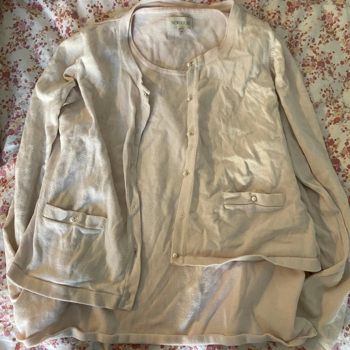 Säljer ett super sött set från Newhouse i ljusrosa. Setet består av en ärmlös linnetopp med rund hals och en matchande kofta med pärlknappar och två små fickor fram. Båda plaggen är i mjuk bomull och passar perfekt för en clean och stilren look 💞aldrig använd! Man kan välja att bara köpa en av dem och då är de såklart billigare 🫶