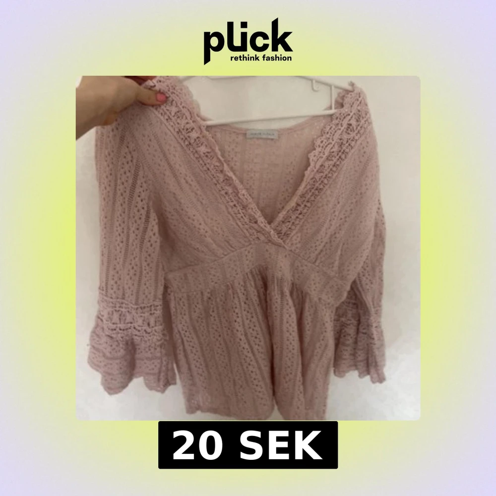 Säljer en rosa spetsblus från Zara med v-ringning och omlott-design. Blusen har trekvartsärmar med volangdetaljer och ett vackert spetsmönster. Perfekt för en somrig look! Vet ej storlek men typ m. 20kr