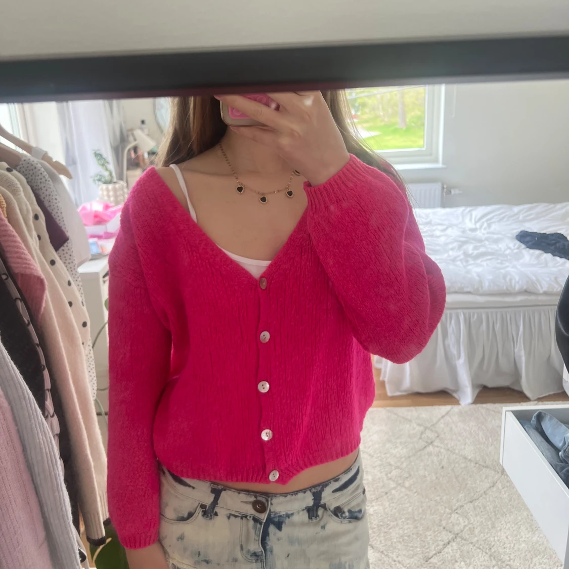 Jättesöt rosa stickad kofta i mycket bra skick!💕