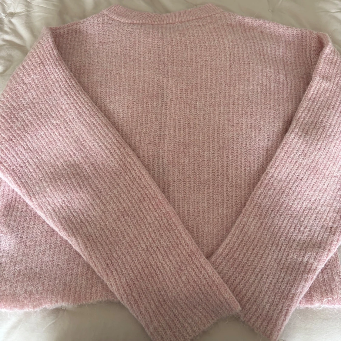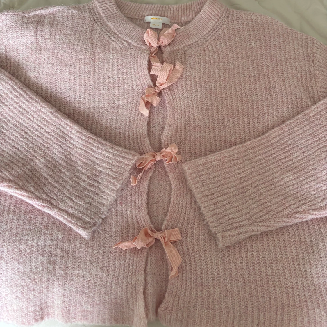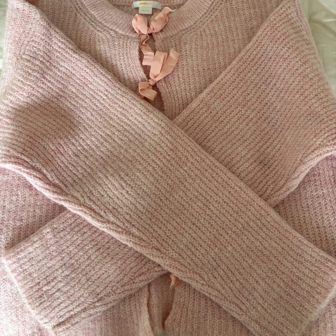 Supergullig ljusrosa stickad kofta från Gina Tricot med långa ärmar och fyra söta rosetter framtill som stängning. Koftan har en mysig, mjuk känsla och är perfekt för lager-på-lager. Säljer för att den inte kommer till användning/ använd endast en gång❣️original pris 300kr