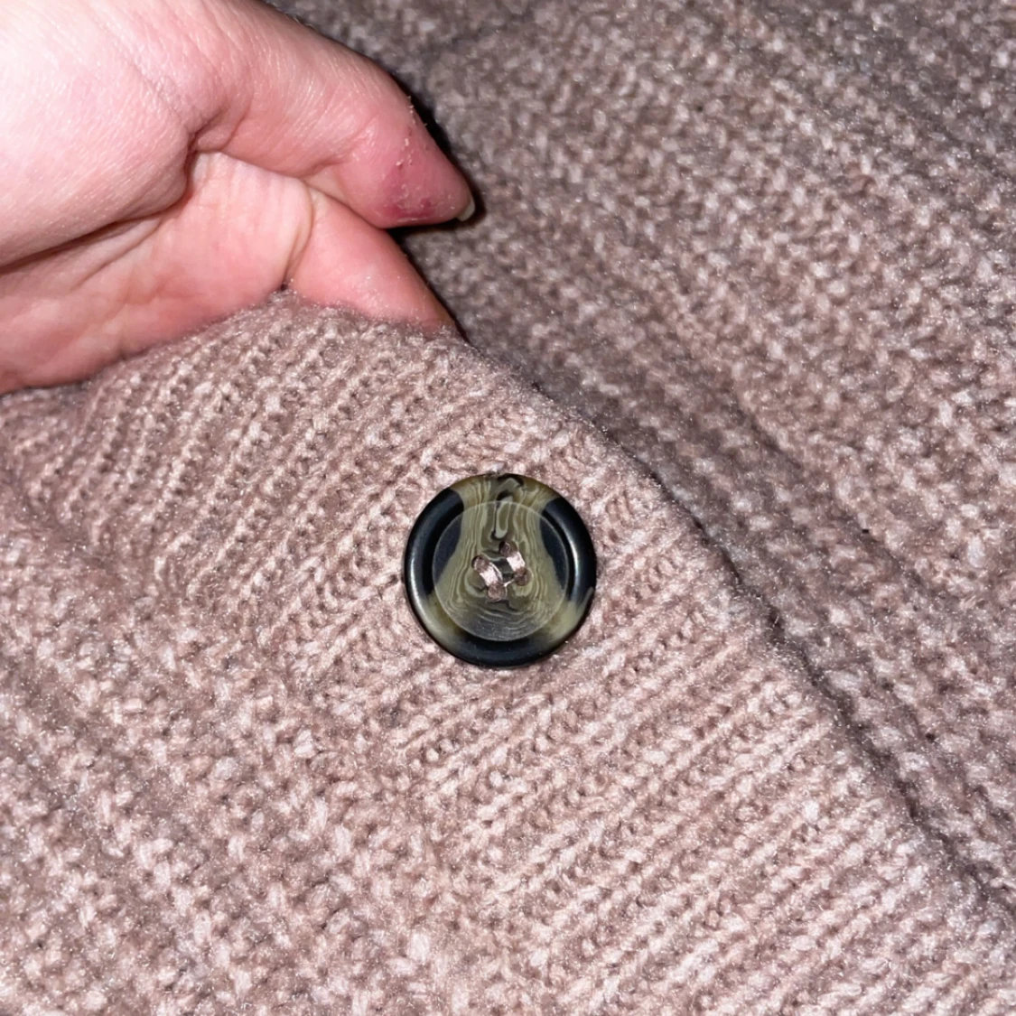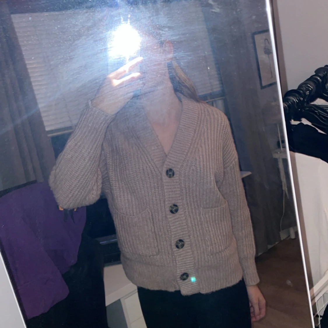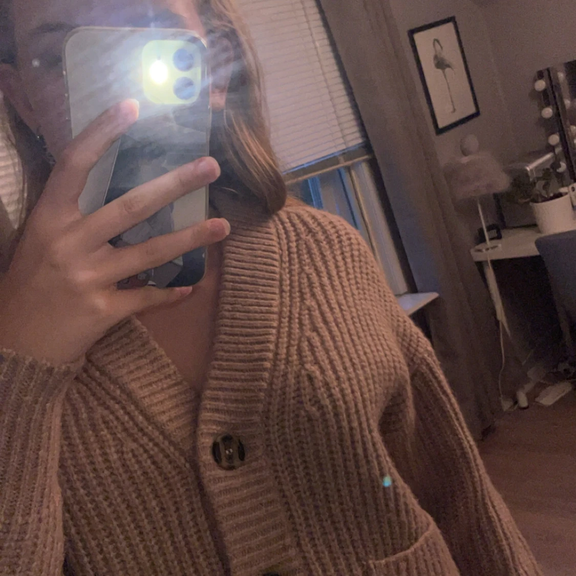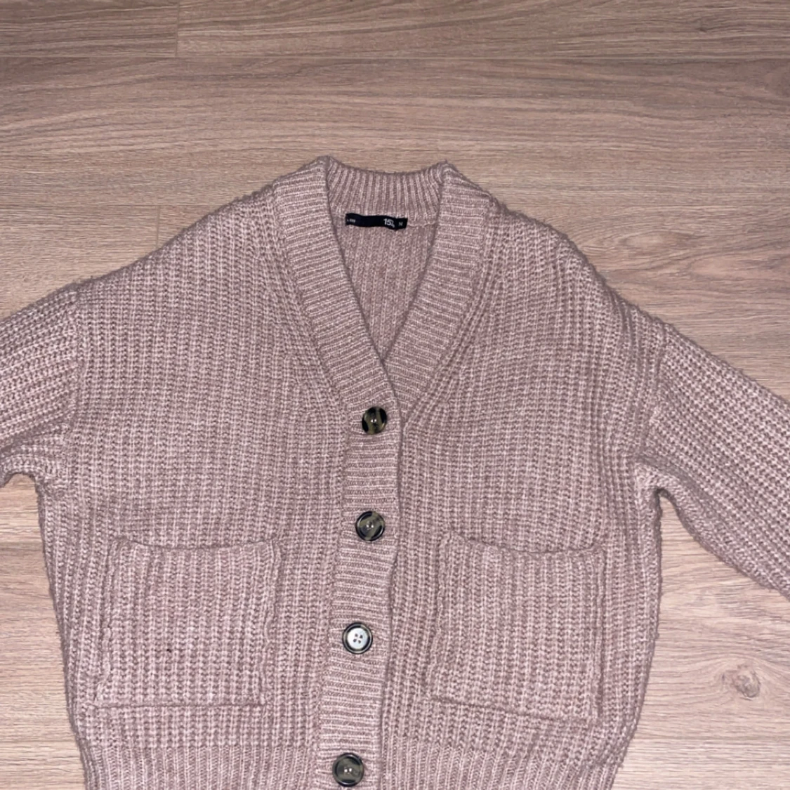 Mysig rosa stickad kofta, den ser beige ut men är mer åt de rosa hållet irl. Den har 4 knappar i fint mönster, tröjan är väldigt mysig och helt perfekt till hösten. Säljer då den aldrig kommit till användning
