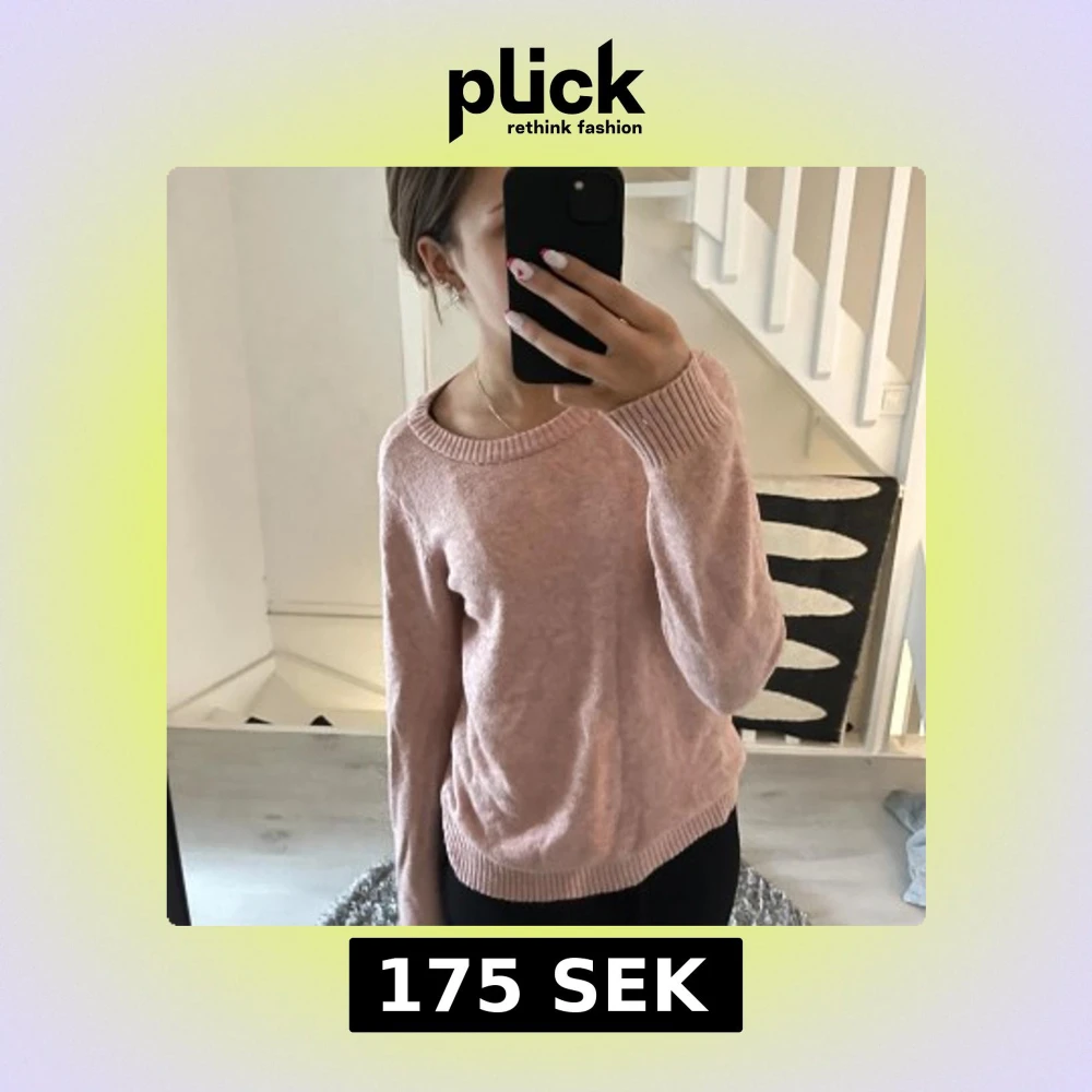 Mysig rosa stickad tröja med rund halsringning och långa ärmar💕