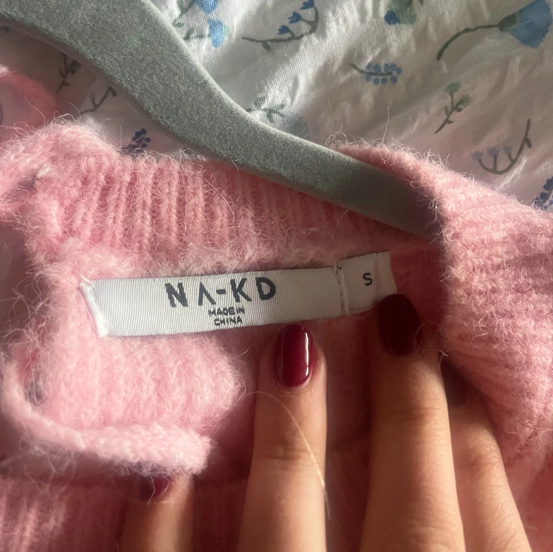 Superfin rosa stickad tröja från NA-KD 🩷Den har lite längre ärmar och en söt detalj med snörning baktill☺️Använd 1 gång!!