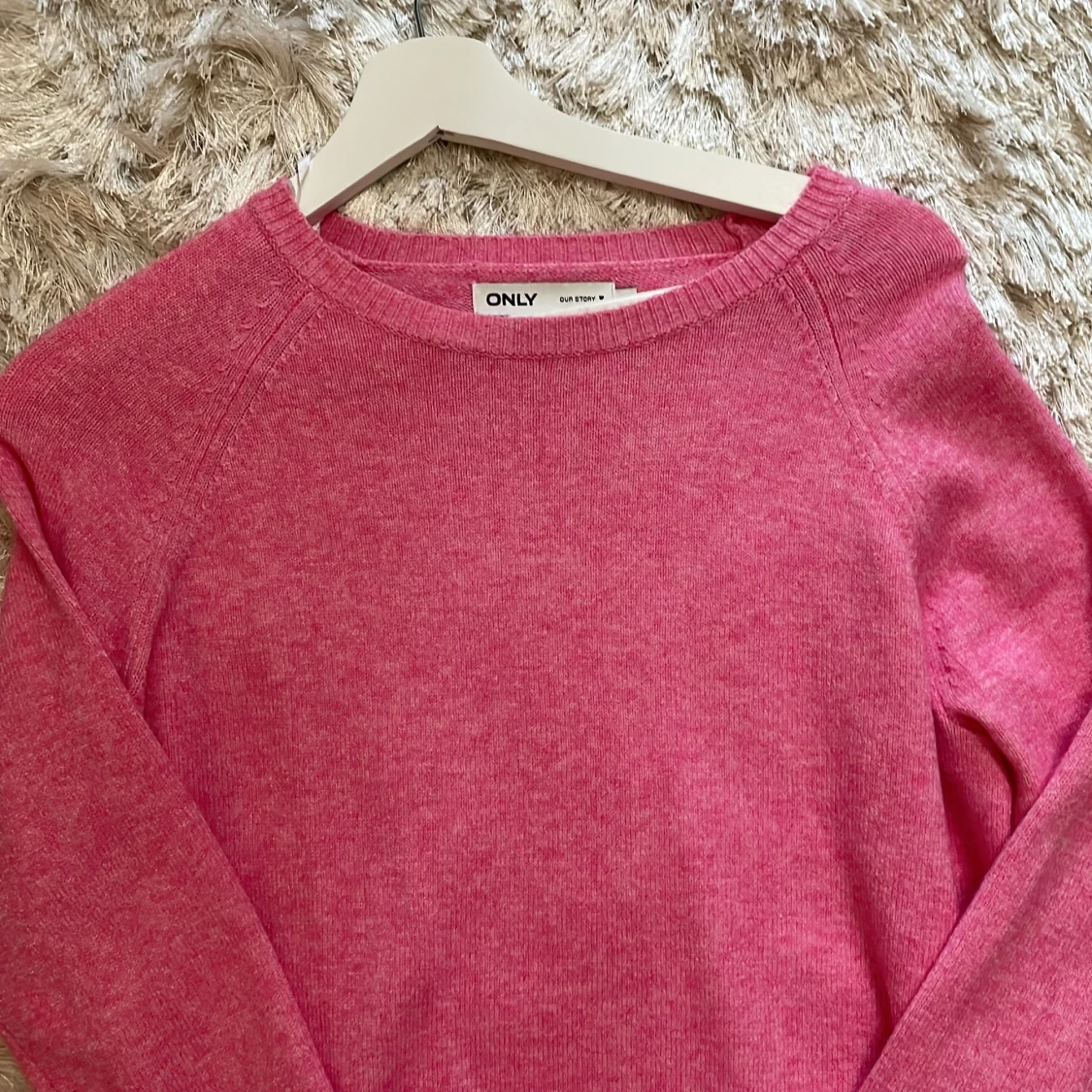 Mysig rosa stickad tröja från ONLY med rund halsringning och ribbade muddar vid ärmslut och nederkant. Perfekt för lager-på-lager och enkel att matcha med jeans eller kjol. Långärmad och i en mjuk, skön kvalitet.