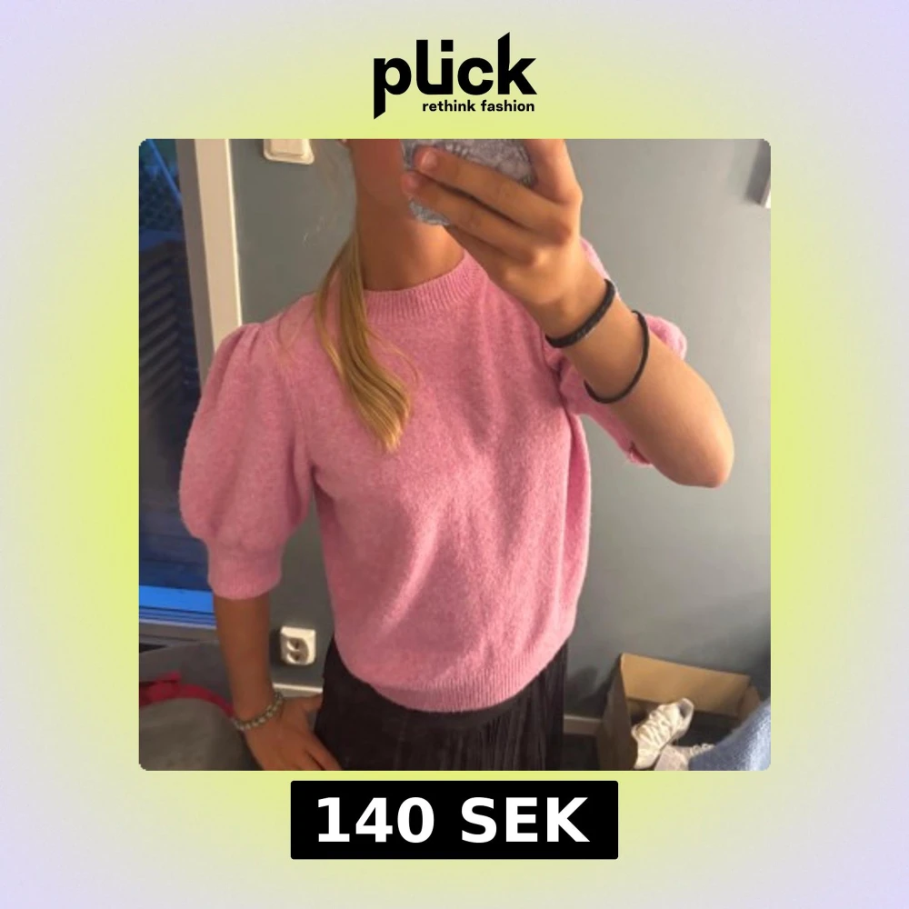 Superfin rosa stickad tröja från Vero Moda med puffärmar och ribbade muddar. Tröjan har en rund halsringning och är i en mjuk, mysig kvalitet. Perfekt för dig som gillar en söt och trendig look med lite volym på ärmarna.