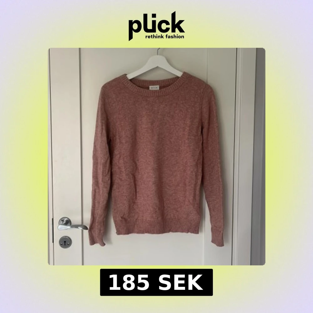Mysig rosa stickad tröja från Vila med rund halsringning och ribbade muddar vid ärmslut och nederkant. Knappt använd.