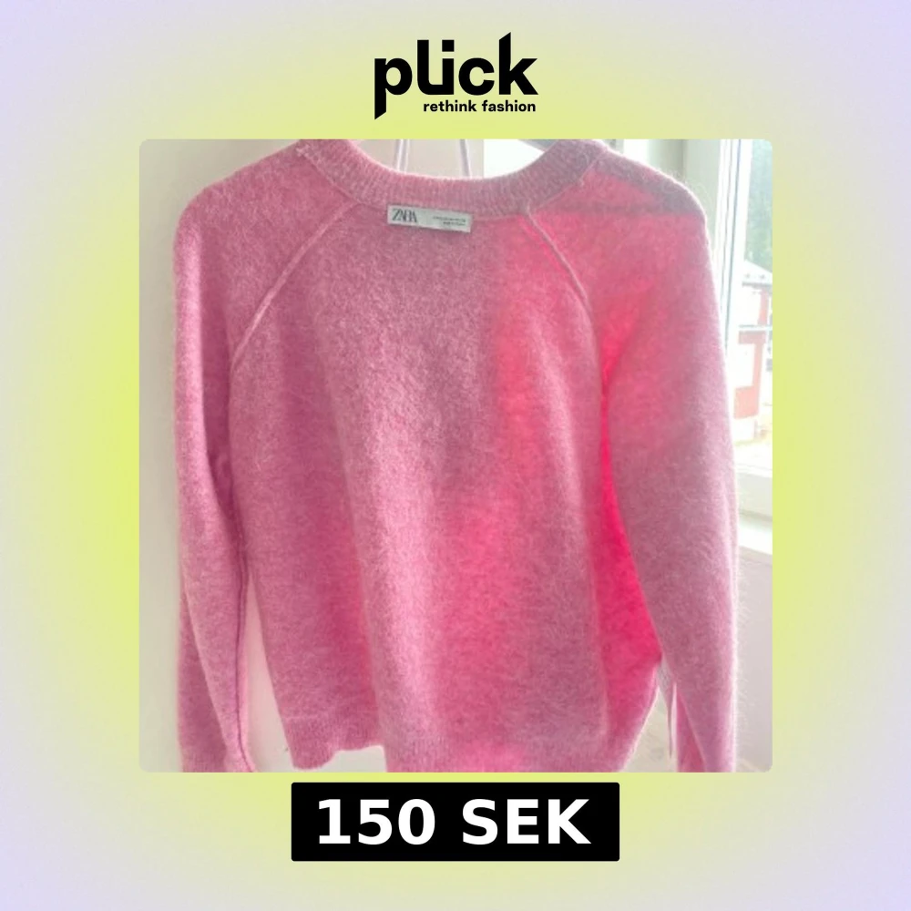 Säljer en mysig rosa stickad tröja från Zara. Tröjan har en enkel design med långa ärmar och rund halsringning. Perfekt för kyliga dagar.
