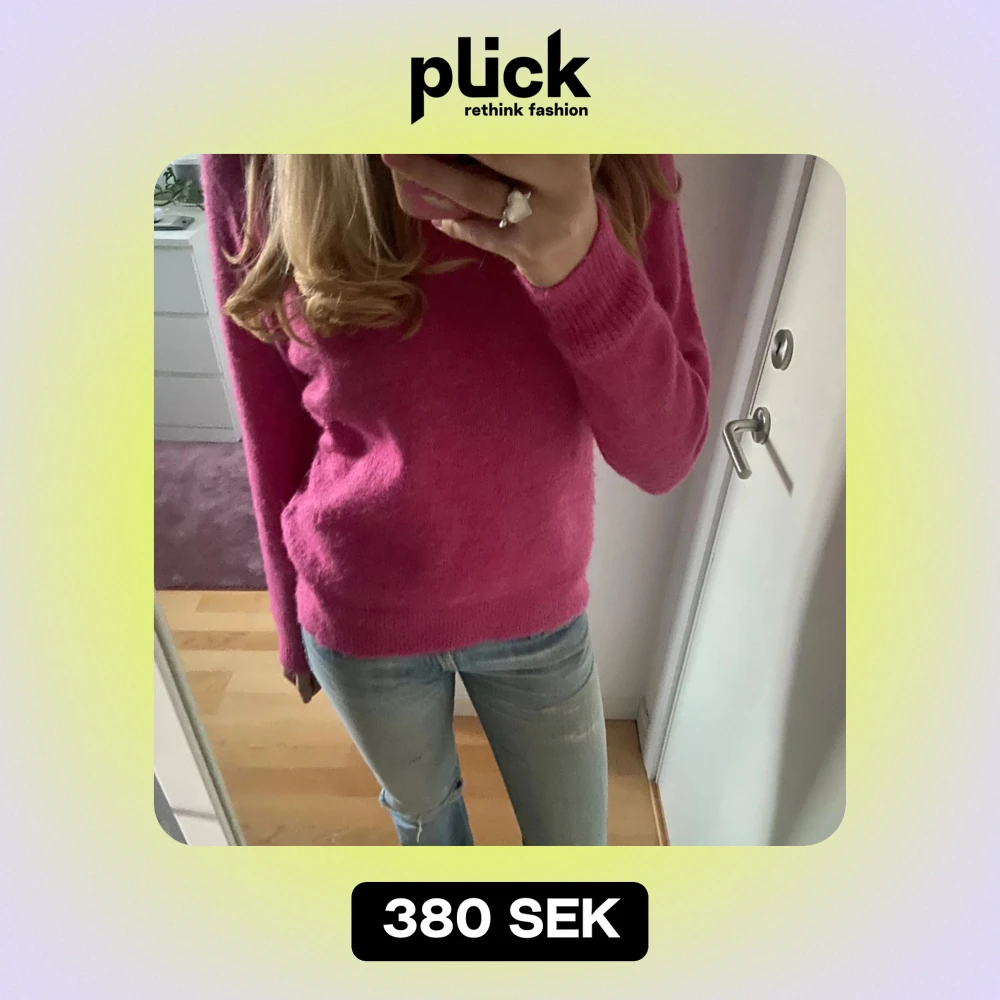 Säljer en supermysig rosa stickad tröja i bra skick. Använd 1-2 gånger, nypris 500kr💘