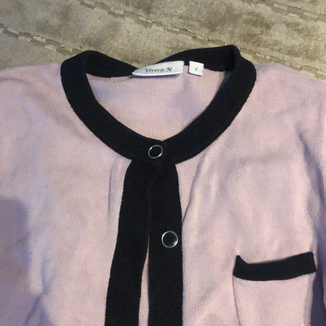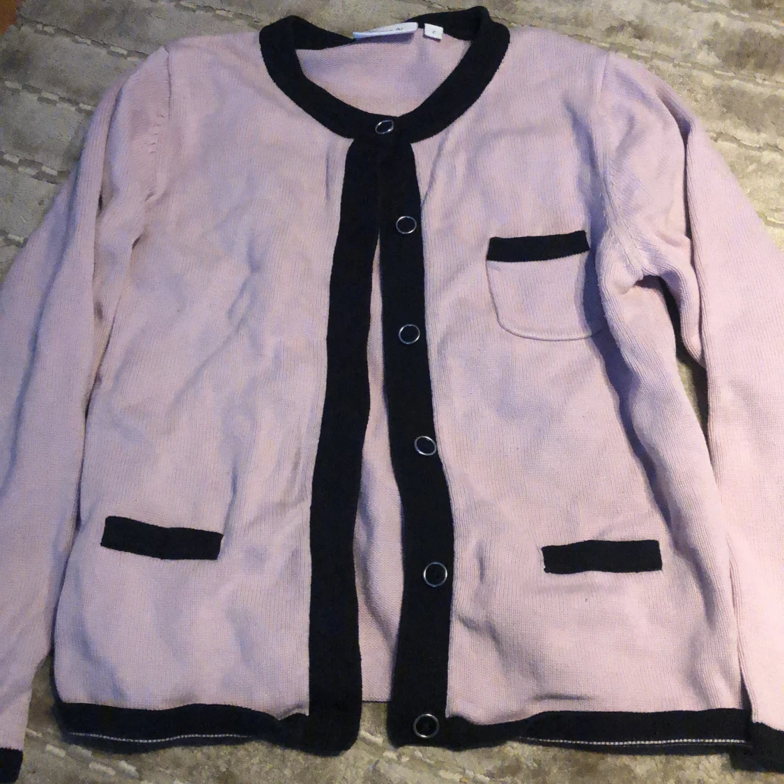 Söt rosa och svart kofta, med fina knappar💕 Står som storlek L men funkar bra på S (jag har det)